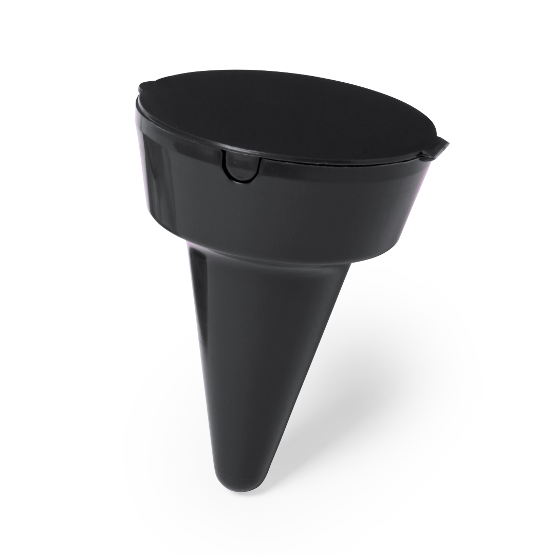 Robusto posacenere portatile con corpo colorato e supporto per il fissaggio.