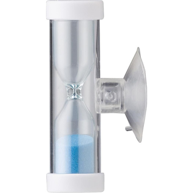 Clessidra piccola in vetro, dettagli in ABS, ventosa, tempo circa 3 minuti, confezione singolarmente in polybag