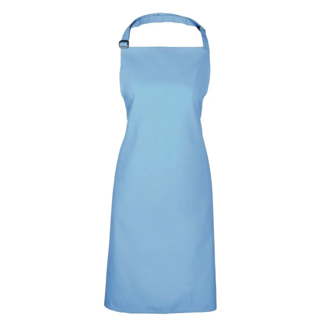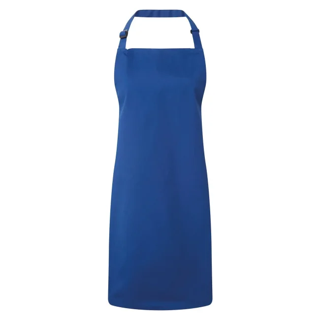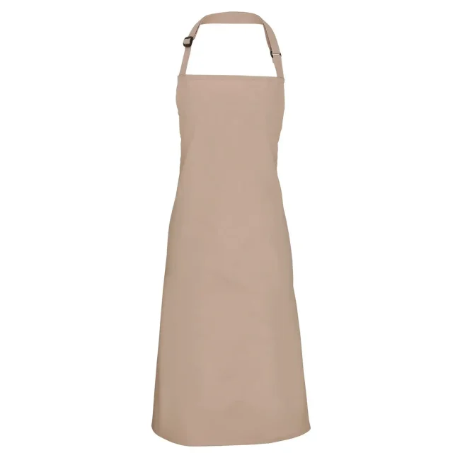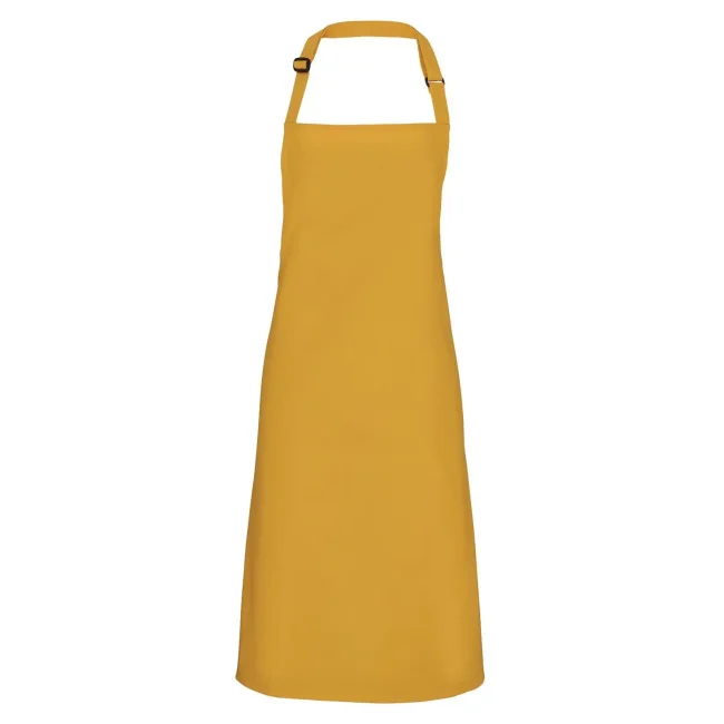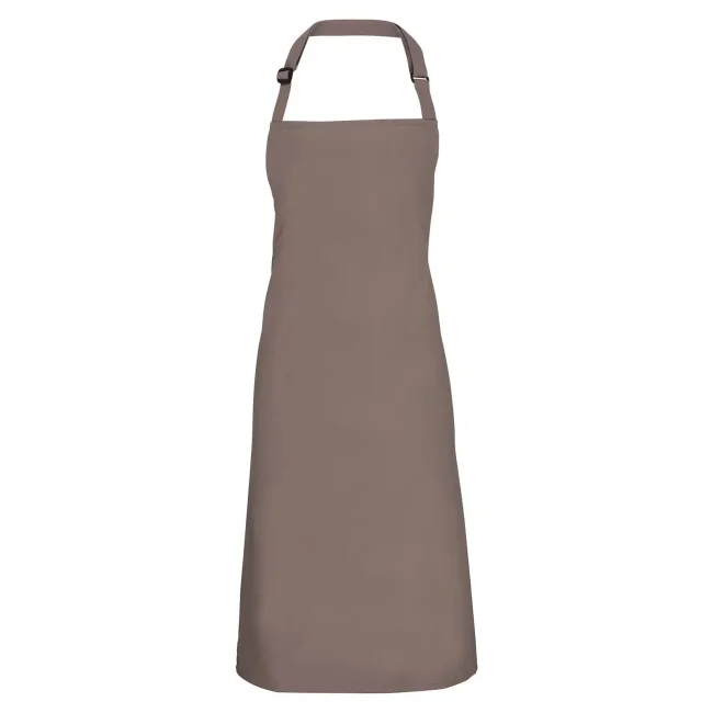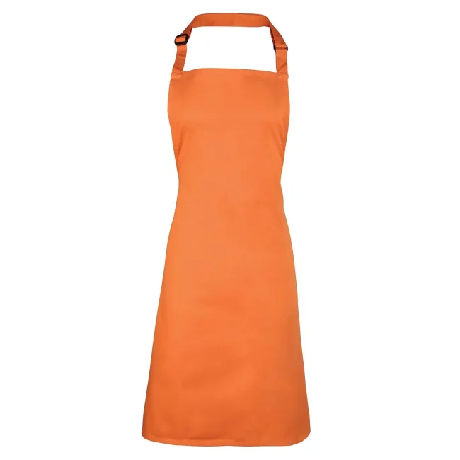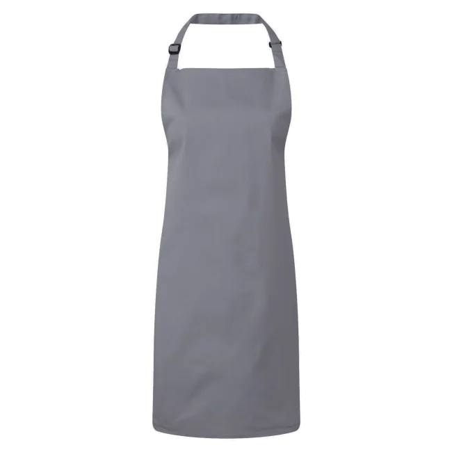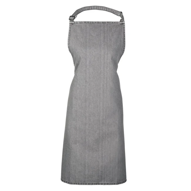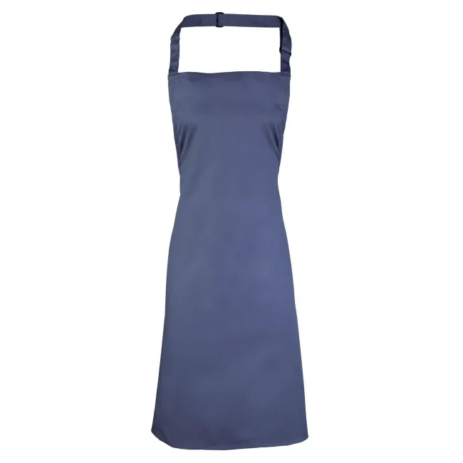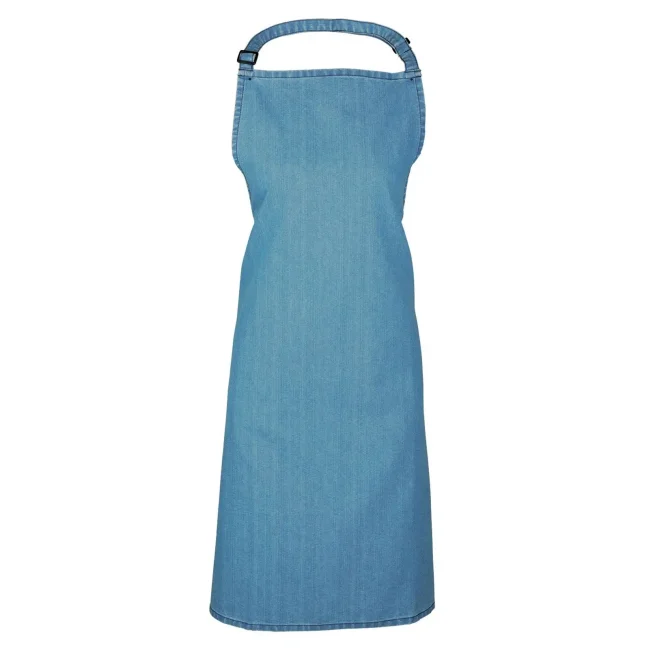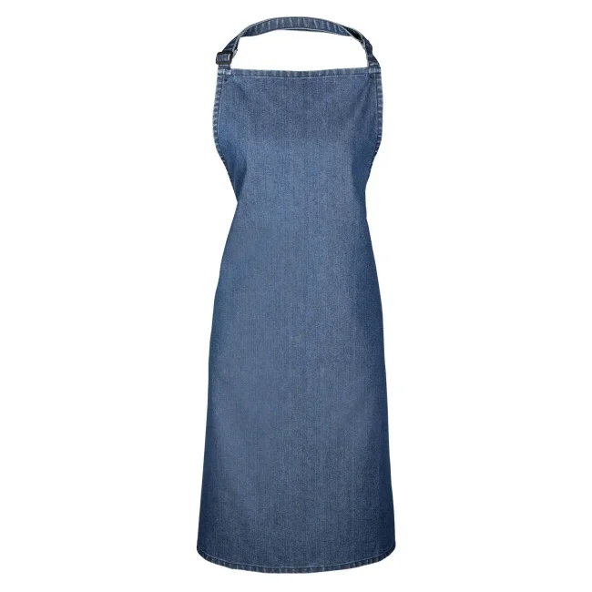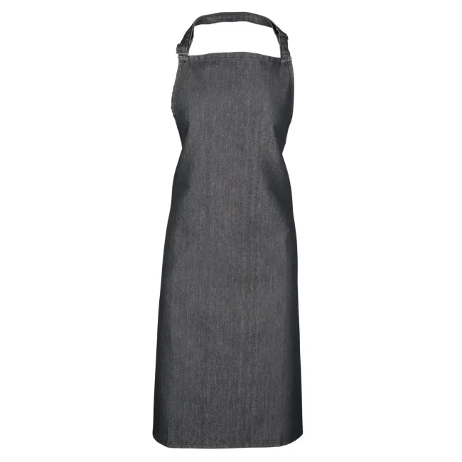 65% poliestere, 35% cotone twill. Grembiule con pettorina regolabile in tessuto, allacciatura posteriore con lacci di 90 cm. Lavabile a 60° in lavatrice domestica, e 85° in lavatrice industriale. (Colori Denim 265gsm).