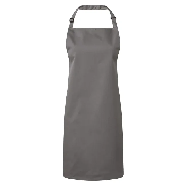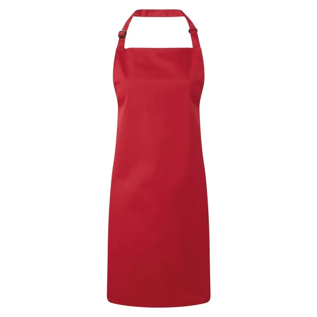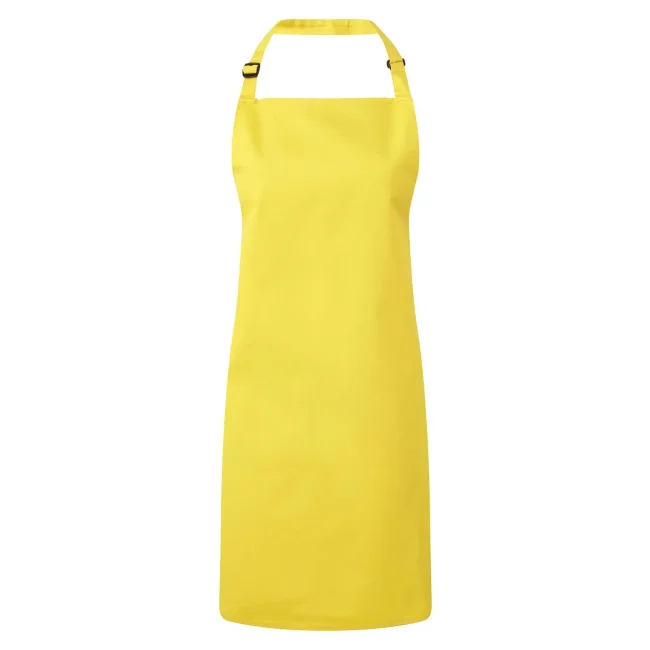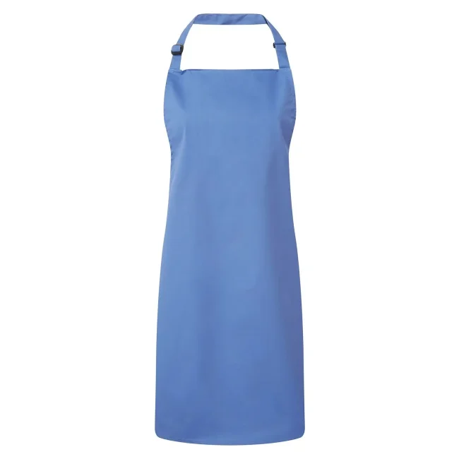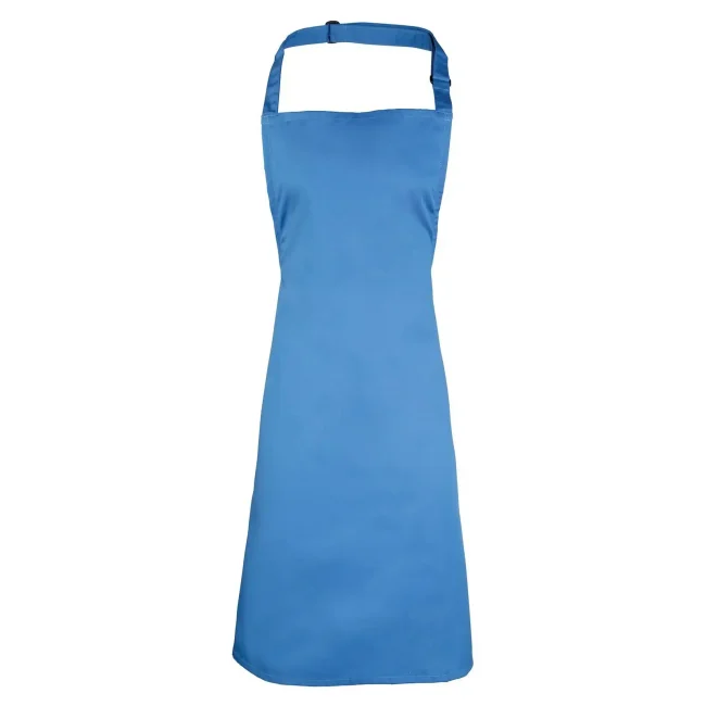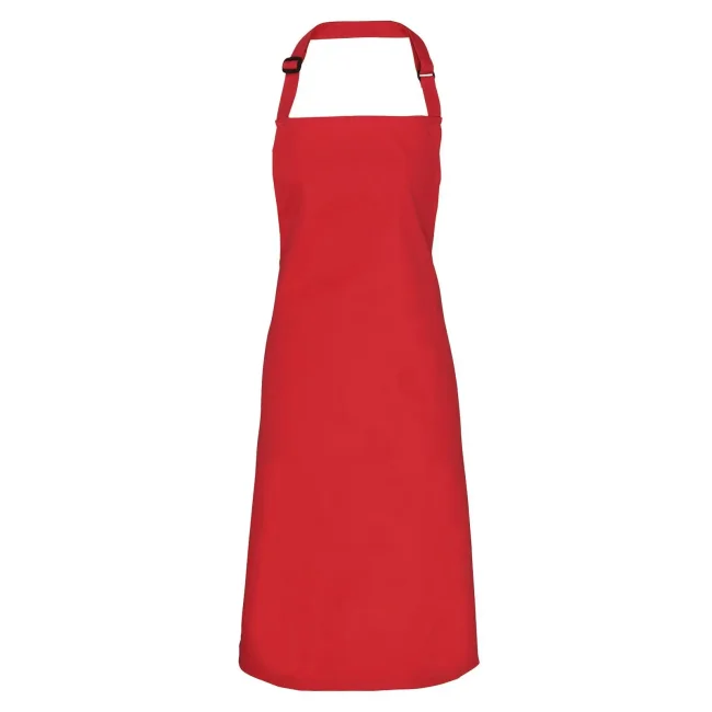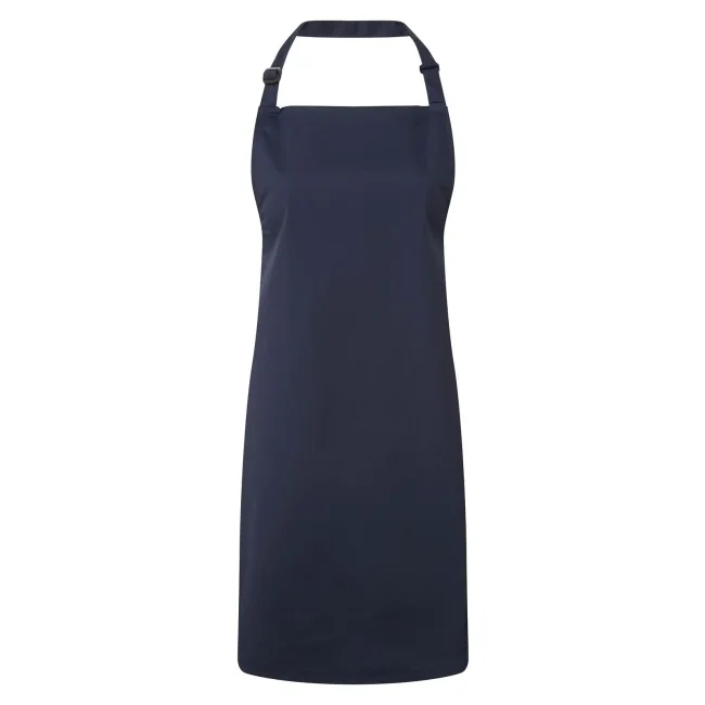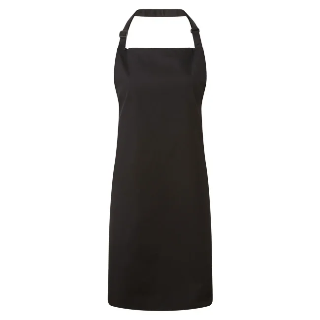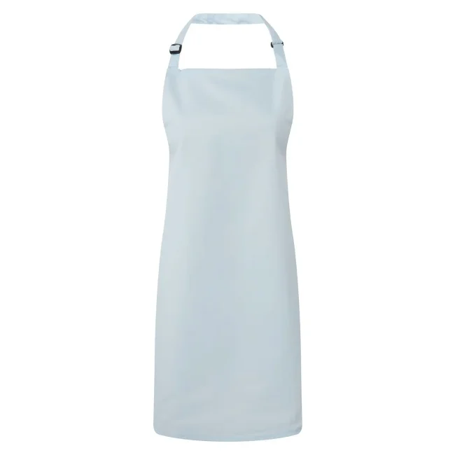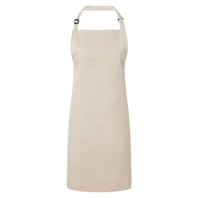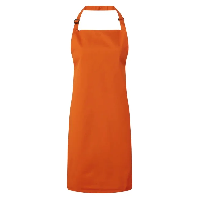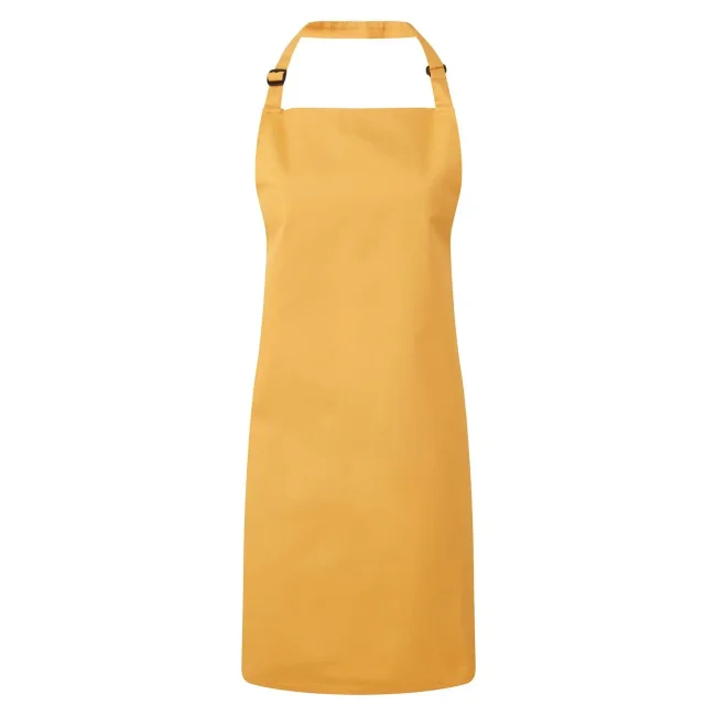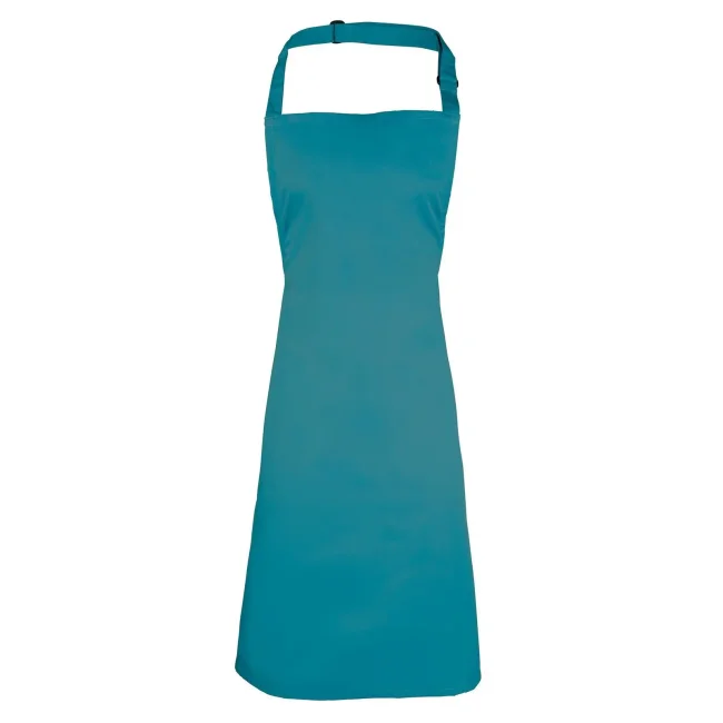 65% poliestere, 35% cotone twill. Grembiule con pettorina regolabile in tessuto, allacciatura posteriore con lacci di 90 cm. Lavabile a 60° in lavatrice domestica, e 85° in lavatrice industriale. (Colori Denim 265gsm).