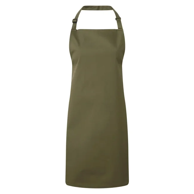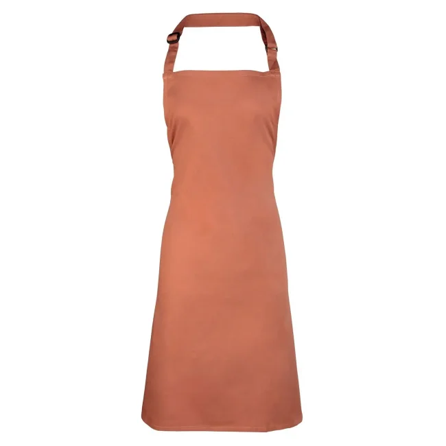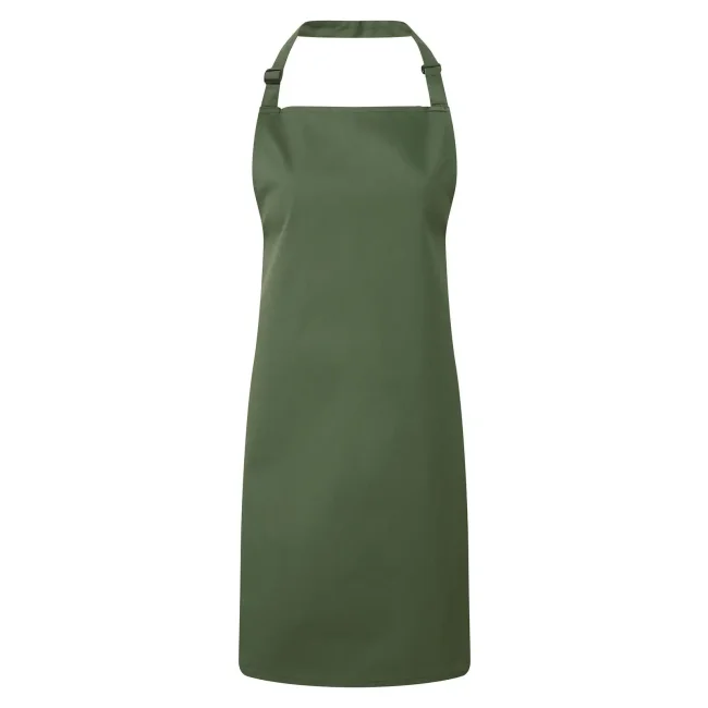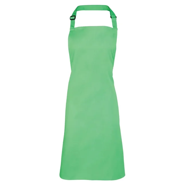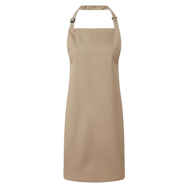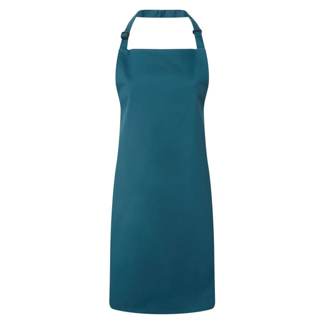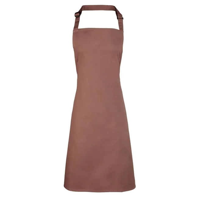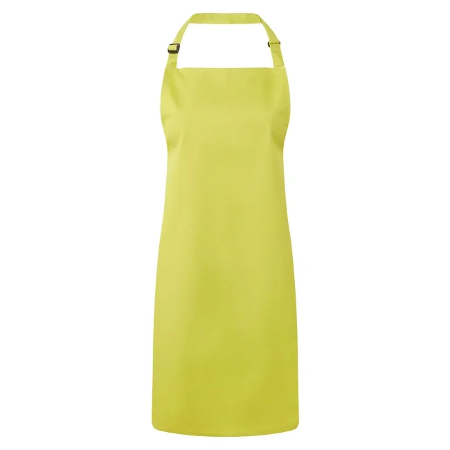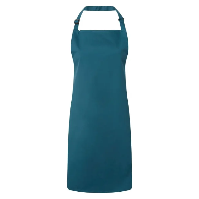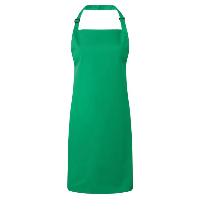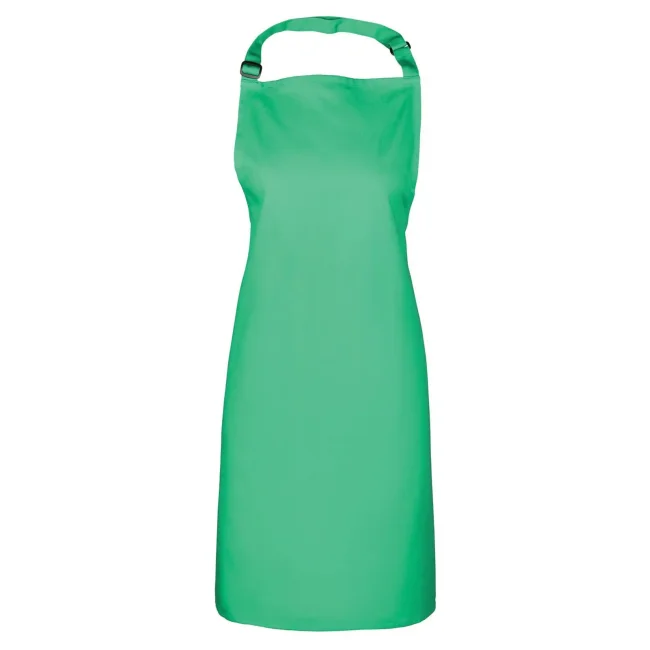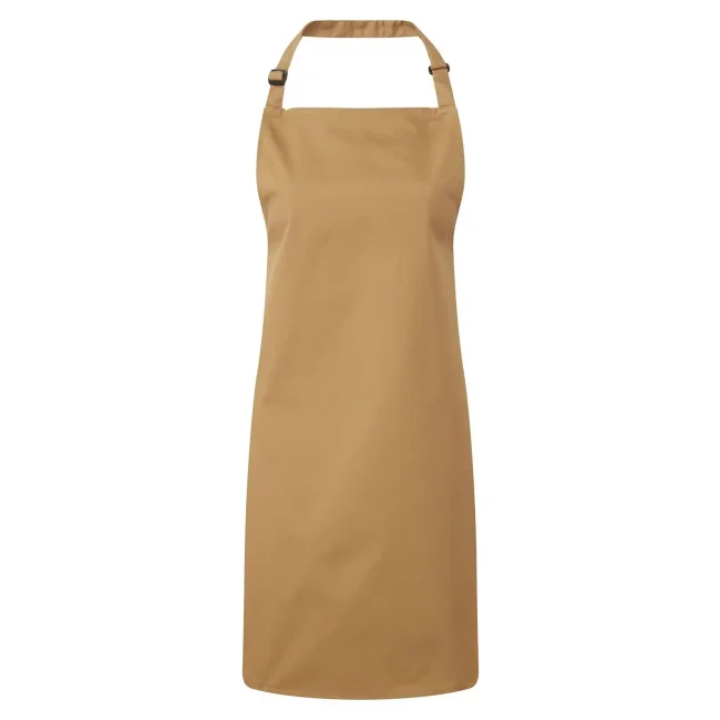 65% poliestere, 35% cotone twill. Grembiule con pettorina regolabile in tessuto, allacciatura posteriore con lacci di 90 cm. Lavabile a 60° in lavatrice domestica, e 85° in lavatrice industriale. (Colori Denim 265gsm).