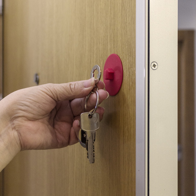 Originale portachiavi in metallo con ventosa rimovibile in colori vivaci. Basta attaccare la ventosa a una superficie piana per appendere il portachiavi. Con piastra metallica per la stampa al laser.