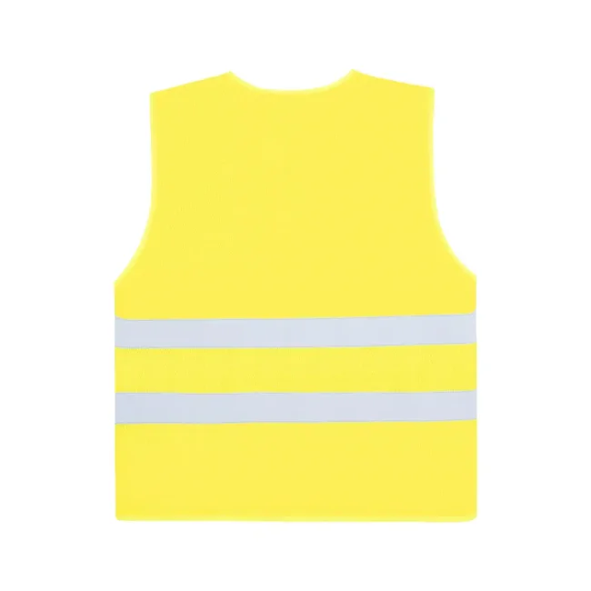 100% poliestere. Gilet ad alta visibilità in rete traspirante con taglio comfort , due strisce riflettenti circonferenziali larghe 5 cm, zip frontale, Giallo certificato secondo la norma EN 17353, altri colori certificati secondo la norma EN ISO 20476.