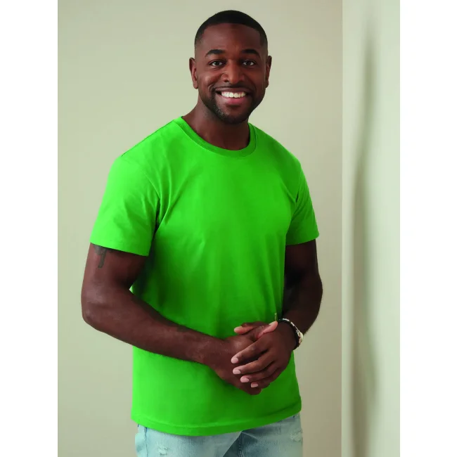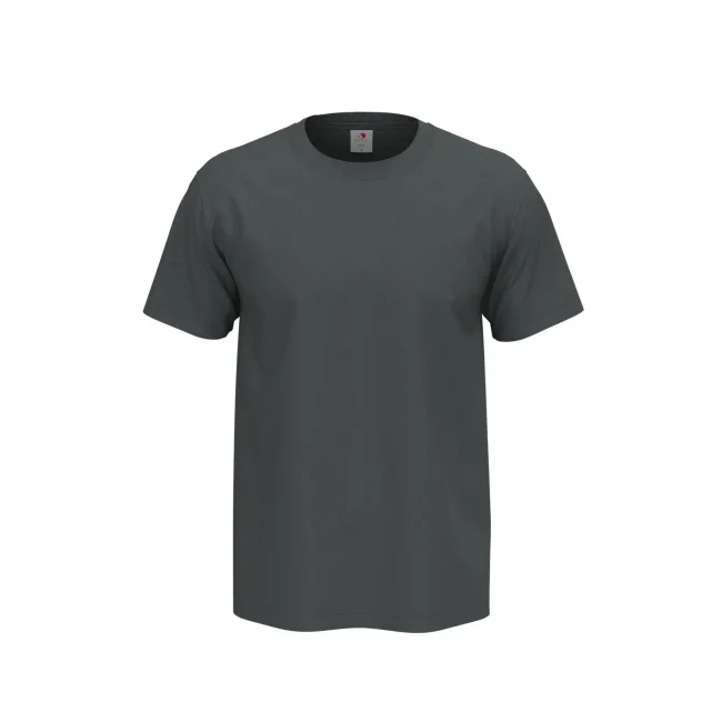 100% cotone ring-spun single jersey. T-shirt manica corta girocollo, nastro di rinforzo alle spalle, struttura con busto tubolare, lavabile a 40°. Col. GYH: 85% cot. 15% visc.