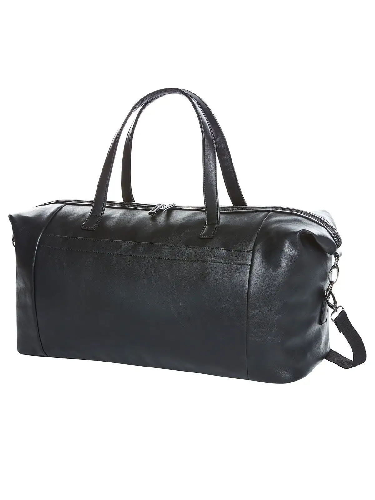 100% PU pelle sintetica. Borsone da viaggio classico ed elegante con accessori metallici, scomparto principale con chiusura lampo a 2 vie, 3 tasche a inserto piatte, tre asole porta penna, tasca piatta anteriore con chiusura magnetica, fondo rinforzato, spallaccio amovibile di lunghezza regolabile. Area stampabile sulla tasca frontale: 23x13 cm. Dimensioni: 56x34x24 cm. Capacità: 25 litri.