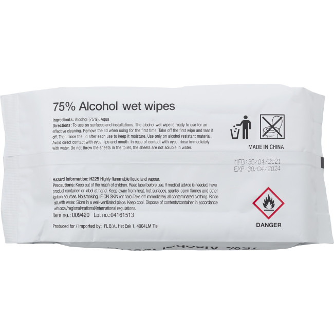 Confezione salviette detergenti, alcol 75%