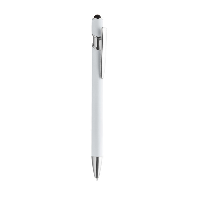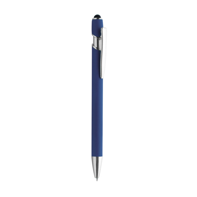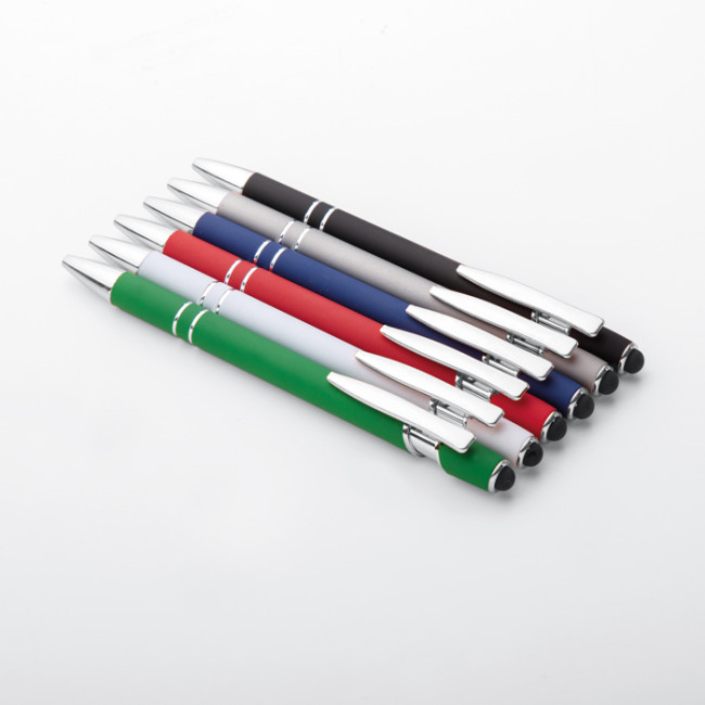 penna a sfera in metallo meccanismo a scatto fusto in materiale soft touch minuteria in metallo cromato gommino touch refill nero