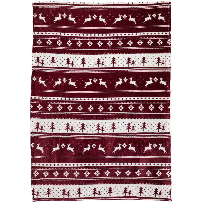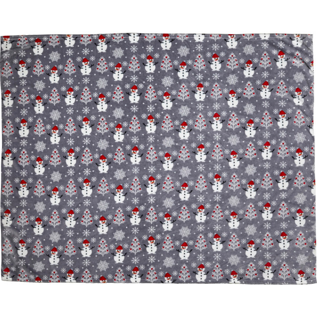 Coperta effetto flanella (260 g/m2), 100% poliestere, motivo a pupazzi di neve, la coperta è avvolta e chiusa da un nastro, dimensione: aperta +/- 120 x 150 cm