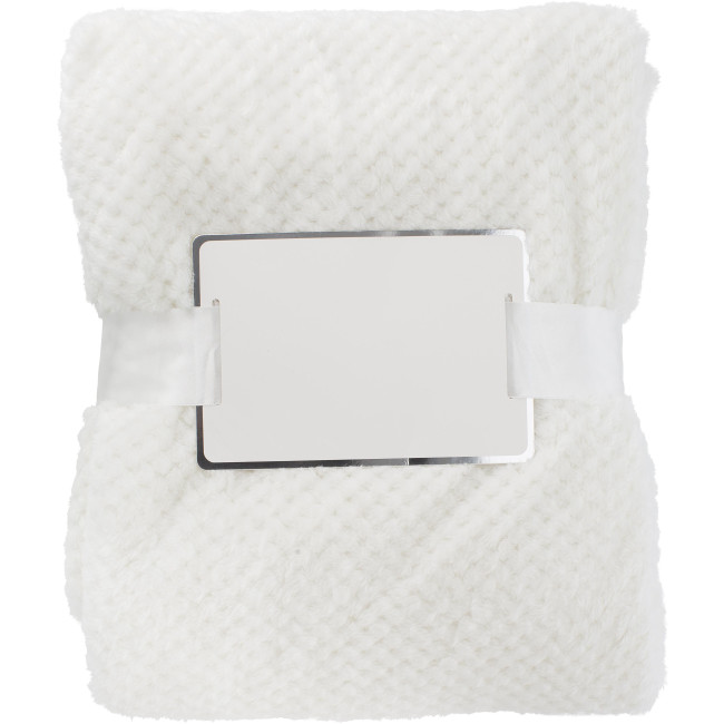 Coperta in pile 230 gr/m², a tema nido d'ape, si presenta confezionata con nastro e cartoncino stampabile
