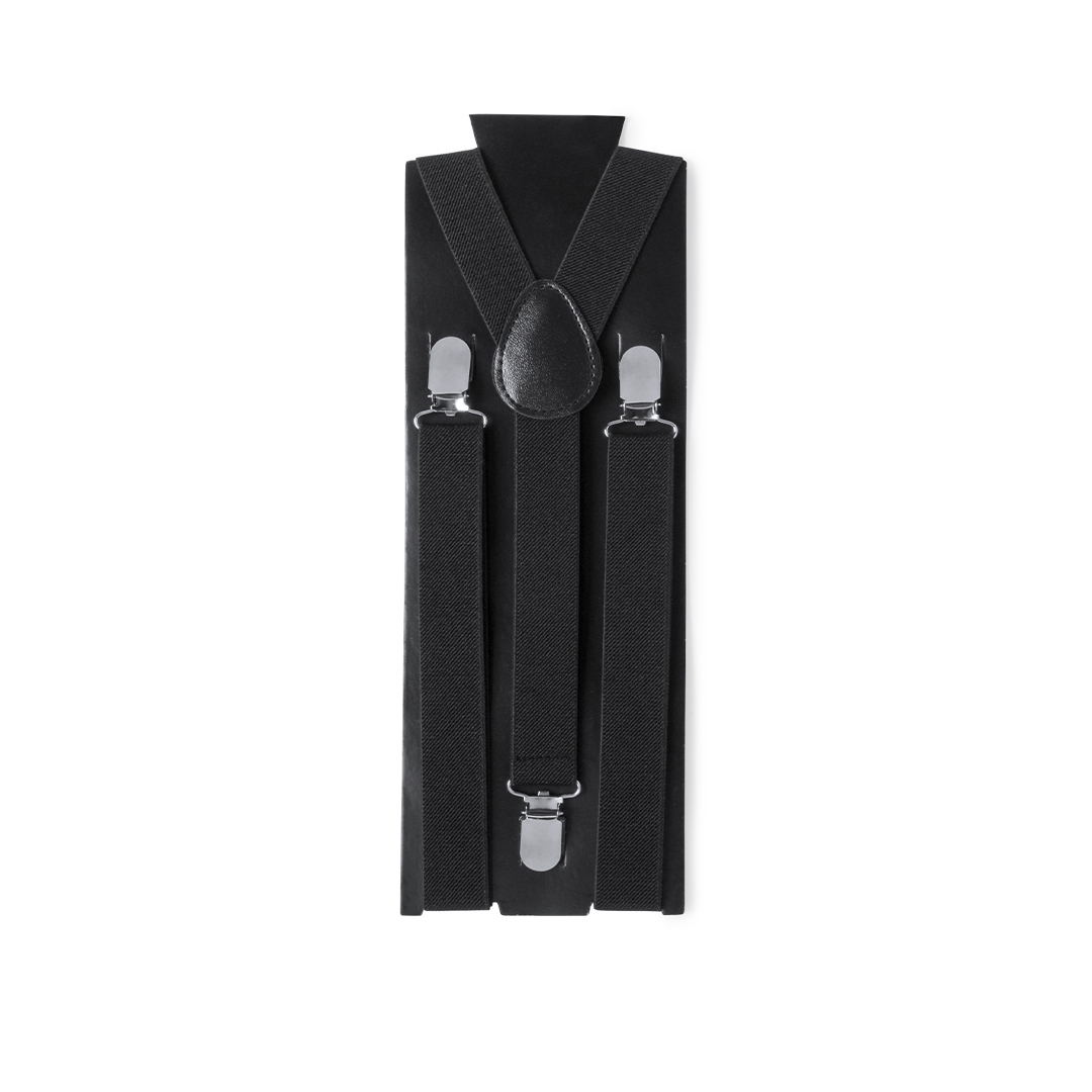 Bretelle in poliestere in colori sobri con finiture in metallo. Con rinforzo in similpelle abbinato sul retro e presentato nell'originale cartone nero individuale.