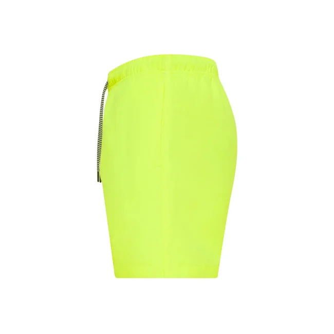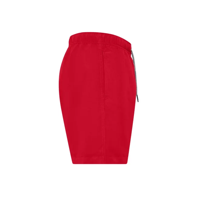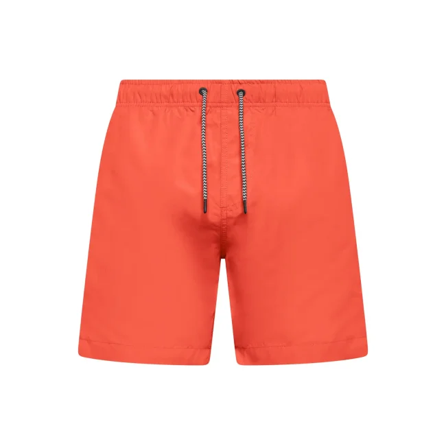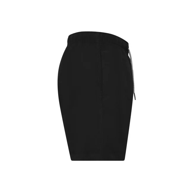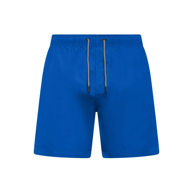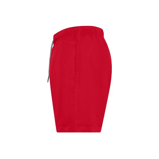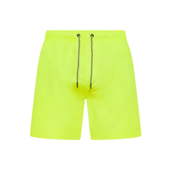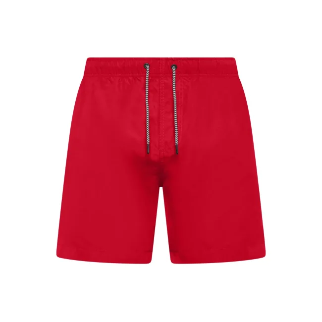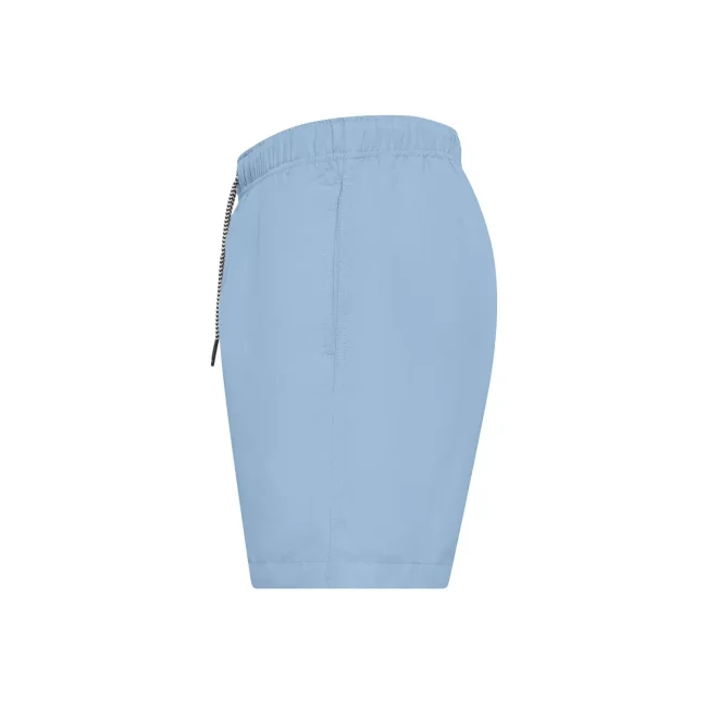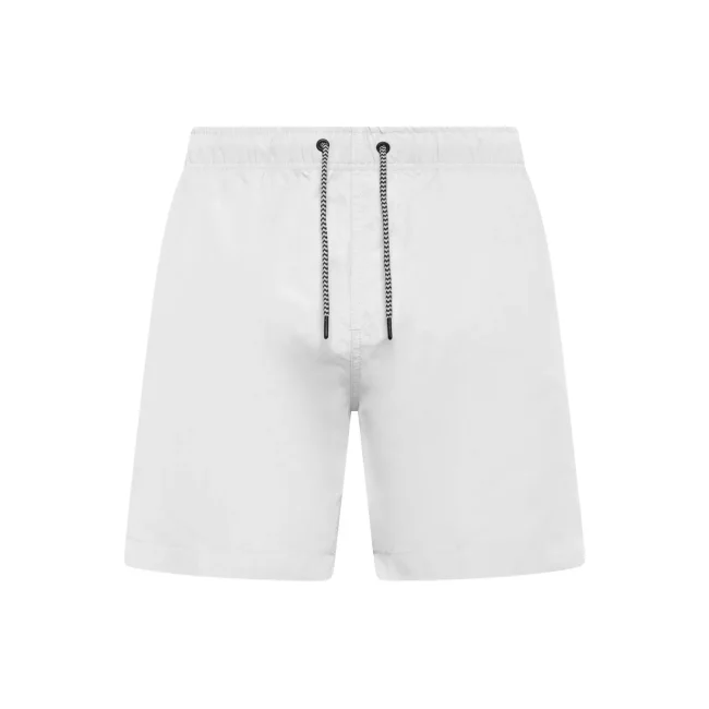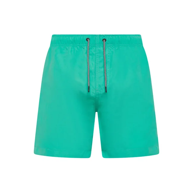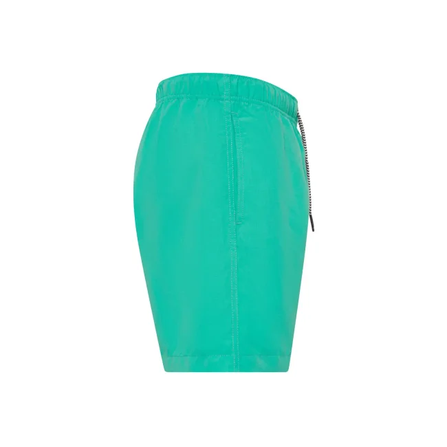 Costume short da bagno realizzato in 100% poliestere riciclato, progettato per asciugarsi rapidamente. Dotato di slip interno a rete tono su tono, 2 tasche laterali e una tasca sul retro a filetto con chiusura in velcro. Il cordoncino in contrasto con punte in metallo e gli occhielli in metallo completano il design. Lavabile a 30°C, è un'ottima scelta per l'estate.