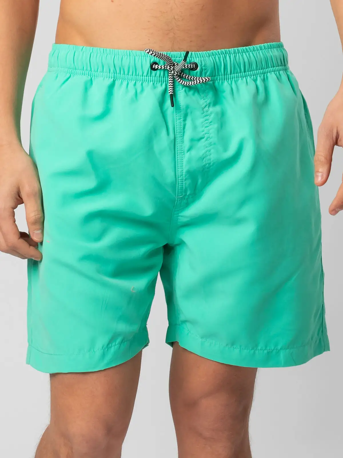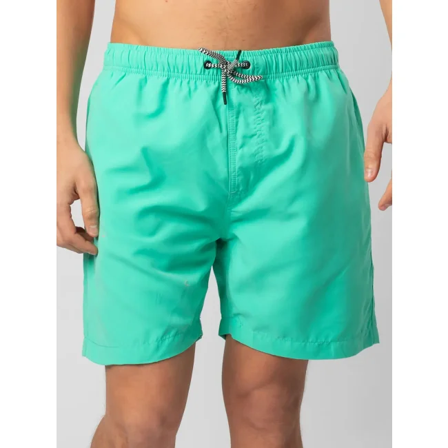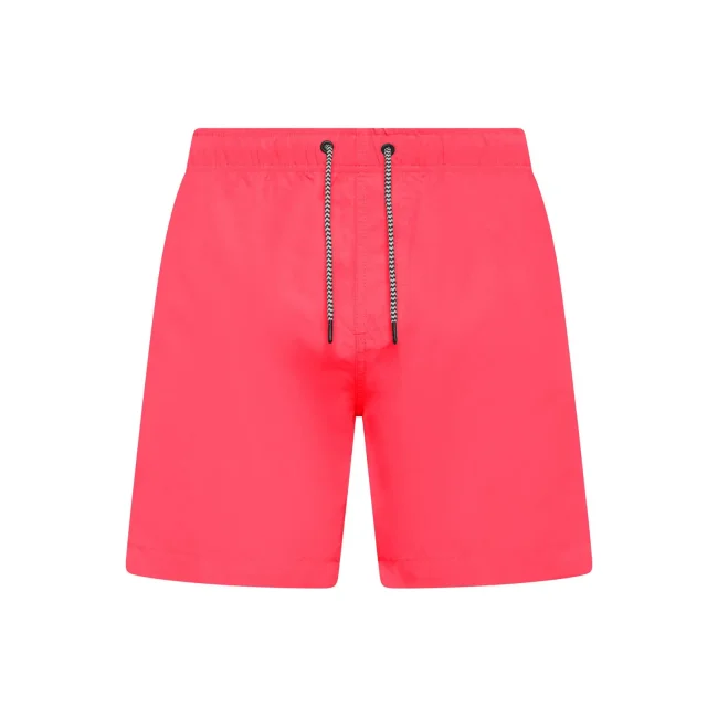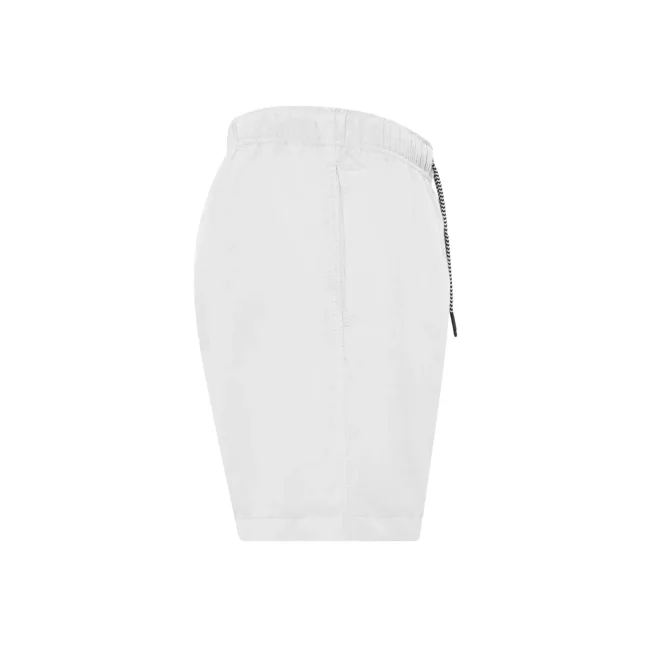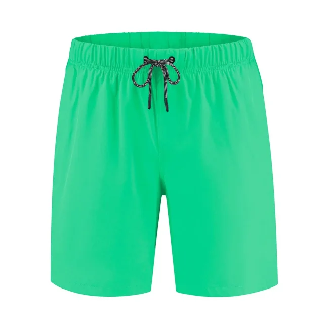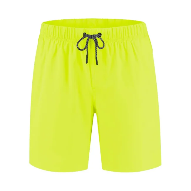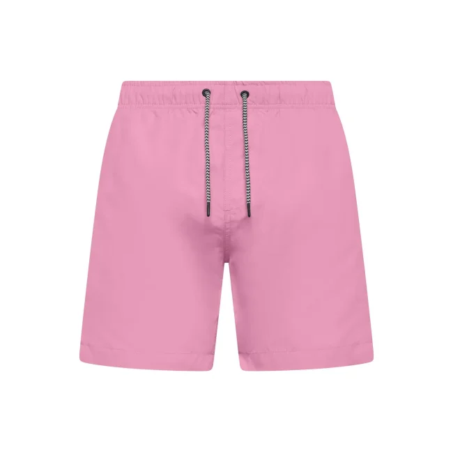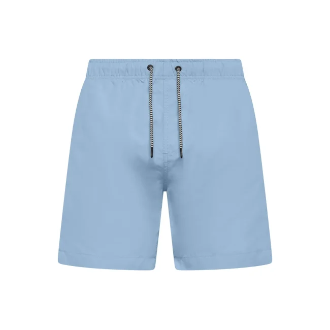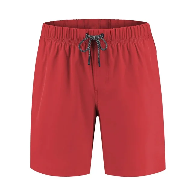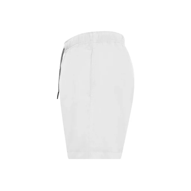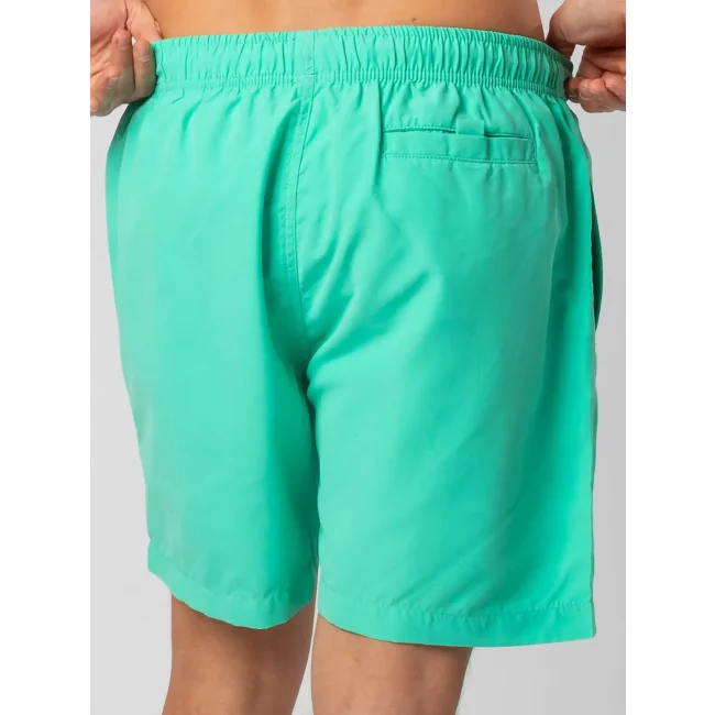 Costume short da bagno realizzato in 100% poliestere riciclato, progettato per asciugarsi rapidamente. Dotato di slip interno a rete tono su tono, 2 tasche laterali e una tasca sul retro a filetto con chiusura in velcro. Il cordoncino in contrasto con punte in metallo e gli occhielli in metallo completano il design. Lavabile a 30°C, è un'ottima scelta per l'estate.