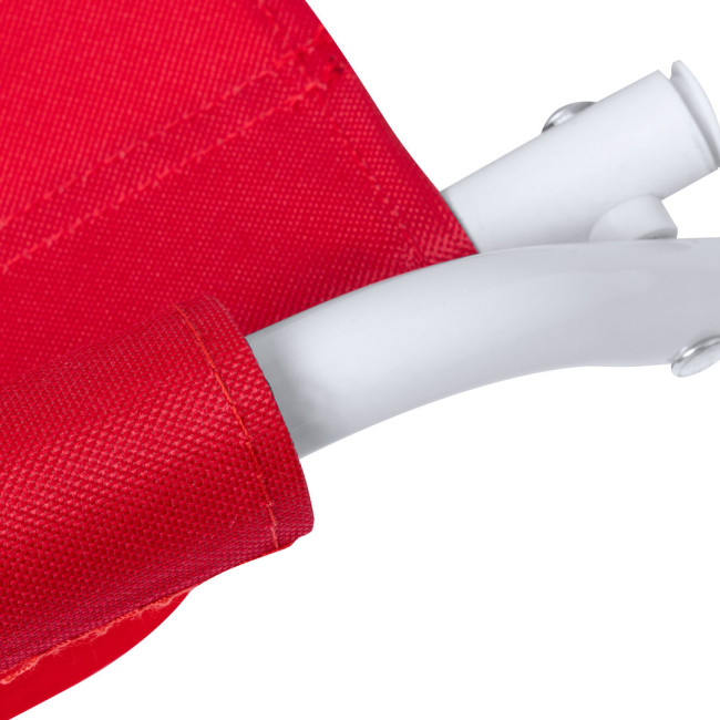 Sedia pieghevole leggera e robusta, con struttura in metallo laccato bianco. Schienale e seduta in poliestere 600D, con imbottitura in schiuma coordinata su braccioli e poggiatesta. Con maniglia di trasporto coordinata e disponibile in un'ampia gamma di colori.