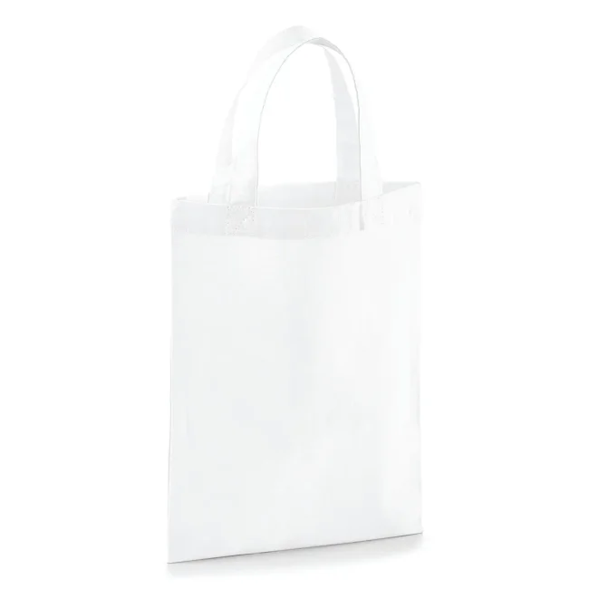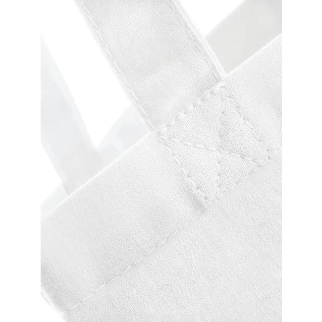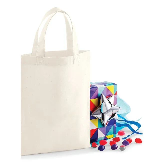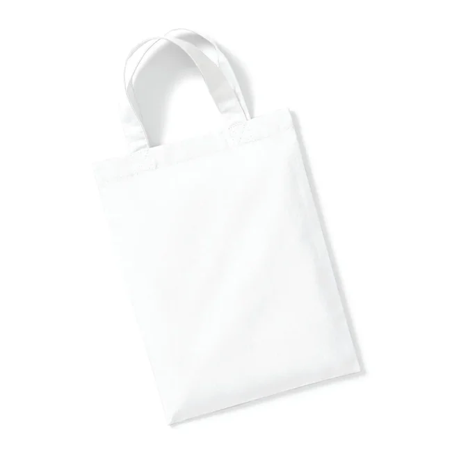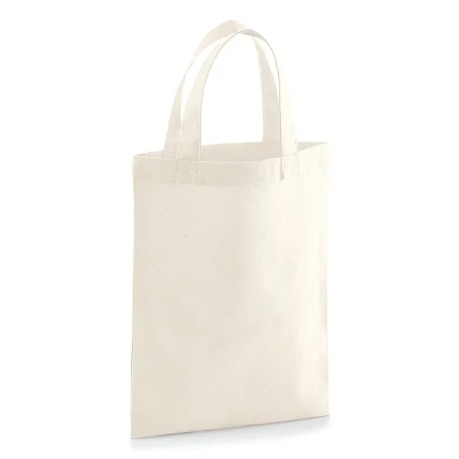 100% cotone. Shopper multiuso. Etichetta removibile. Lunghezza manico: 25 cm, dimensioni: 19 x 25 cm, capacita': 2.5 litri, area stampabile: 15 x 22 cm.