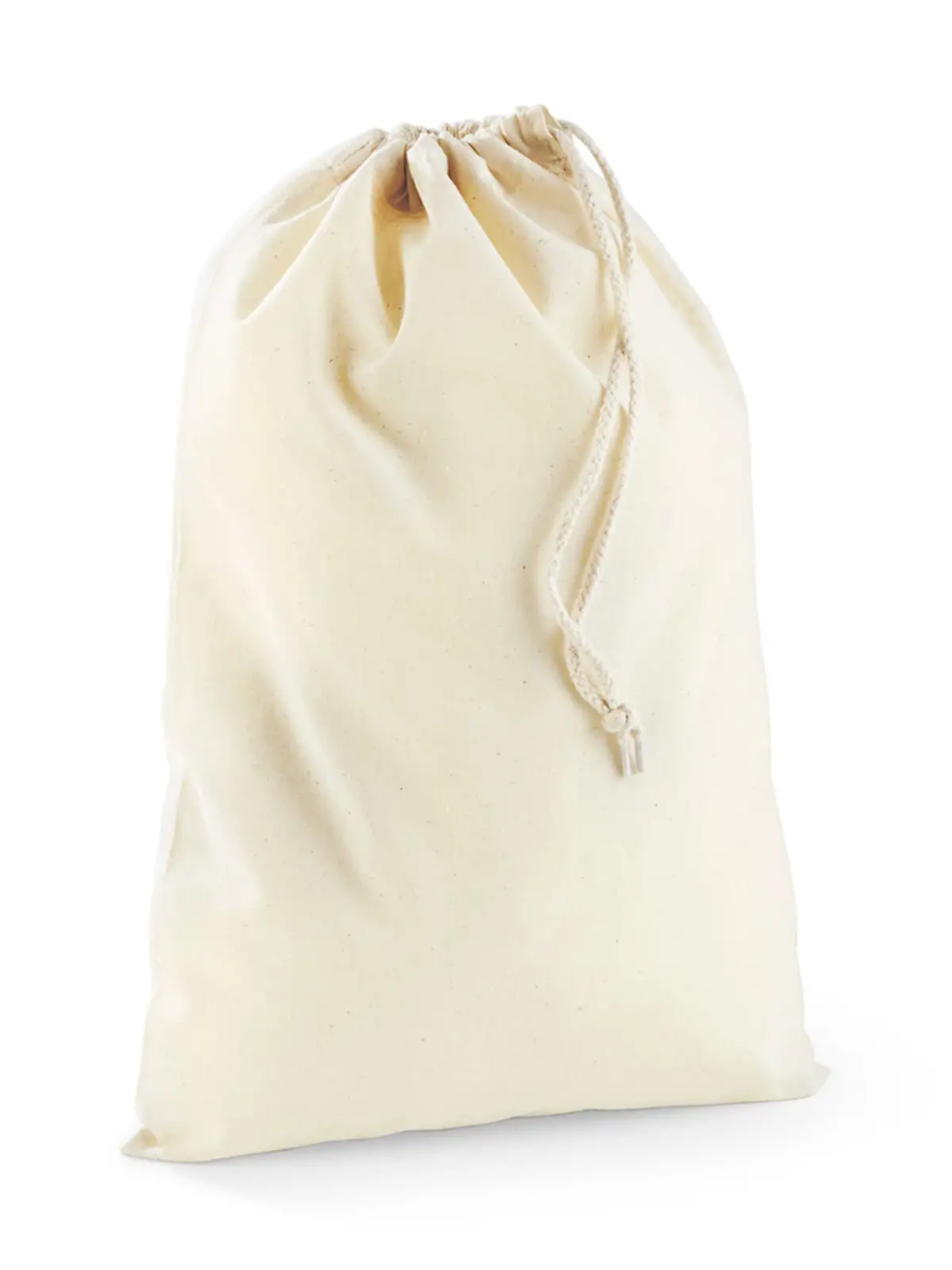 100% cotone. Sacchetti con chiusura in cordino disponibili in 6 taglie (XXS, XS, S, M, L, XL). Etichetta removibile. XXS: 10x15 cm, capacità: 0,25 litri; XS: 14x20 cm, capactità: 1 litro; S: 25x20 cm, capacità: 3 litri; M: 30x45 cm, capacità: 8 litri; L: 40x50 cm, capacità: 14 litri; XL: 49x75 cm, capacità: 38 litri.