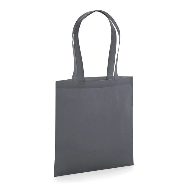 100% cotone organico. Shopper in cotone organico certificato, ampia superficie di stampa, può essere portata a mano o in spalla. Etichetta removibile. Lunghezza manici: 67 cm. Dimensioni: 38x42 cm, capacità: 10 litri, area stampabile: 33x36 cm.