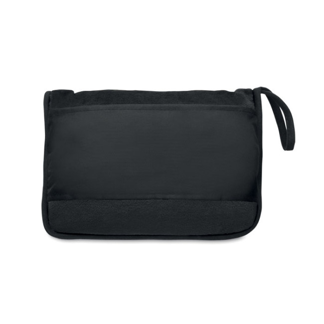 Set 2 in 1 di coperte e/o cuscini di flanella da viaggio da 220 gr/m². L'articolo può essere piegato. Include una tracolla e una maniglia in poliestere 600D RPET.