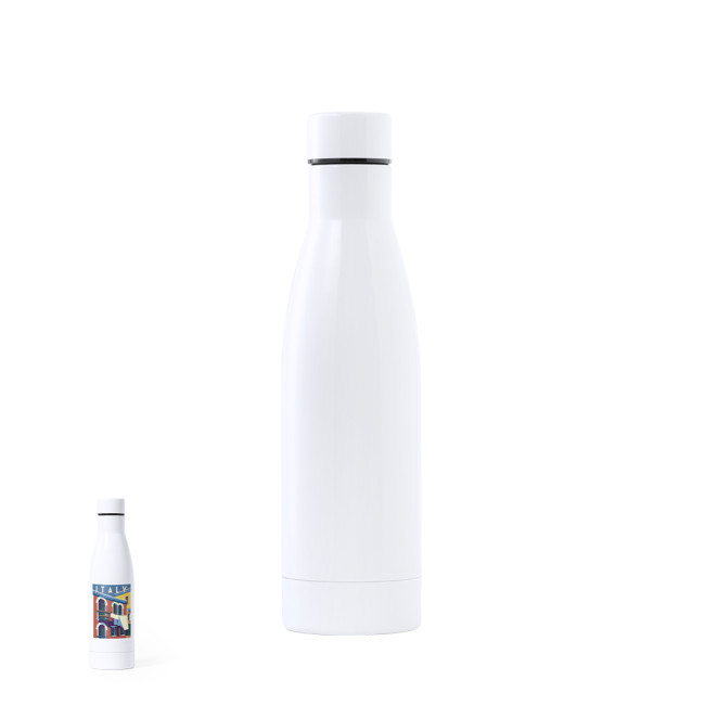 Borraccia in acciaio inossidabile della capacità di 700 ml. Rifinita in bianco liscio e lucido, appositamente progettata per la stampa in sublimazione. Con tappo di sicurezza in acciaio inossidabile, senza BPA. Confezionata in una scatola dal design accattivante.