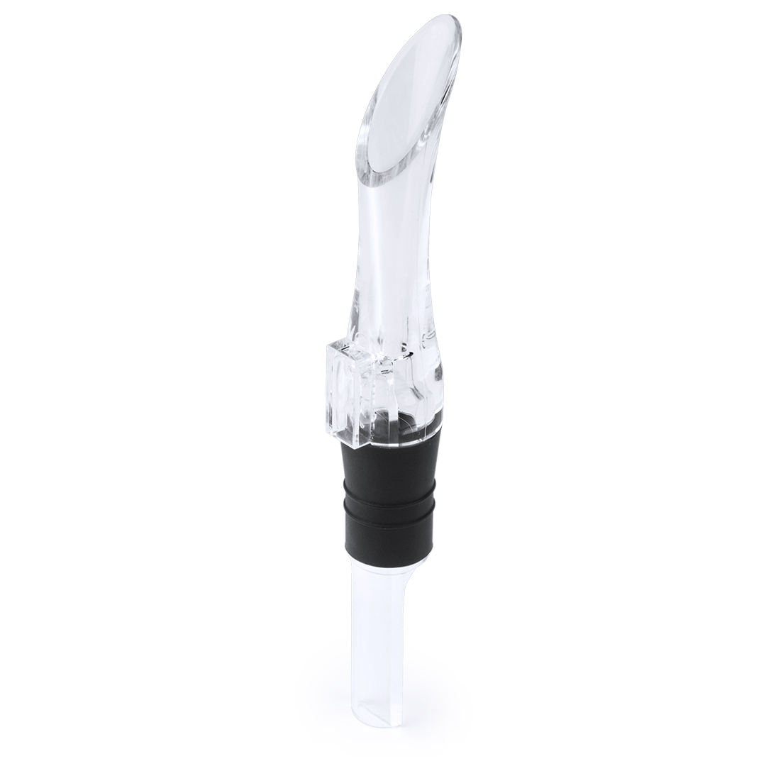 Aeratore per vino con corpo in acrilico trasparente e chiusura di sicurezza. Presentato in un'attraente scatola di design in PVC.
