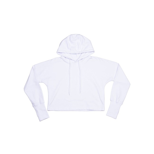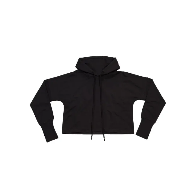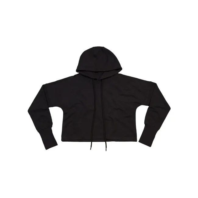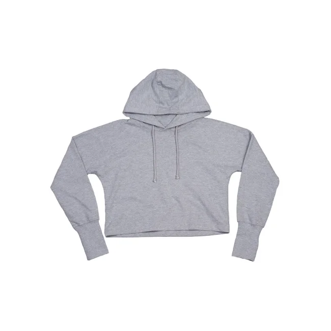 80% cotone organico, 20% rPET. Felpa con maniche set-in, modello corto, polsini più lunghi con passante per il pollice, cappuccio a tre strati con cordoncino lungo tono su tono, non felpata, etichetta strappabile, struttura con cuciture laterali.