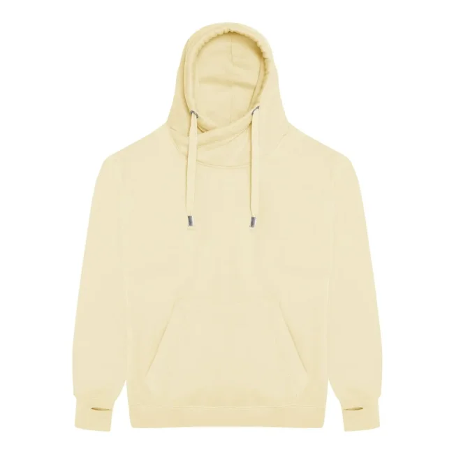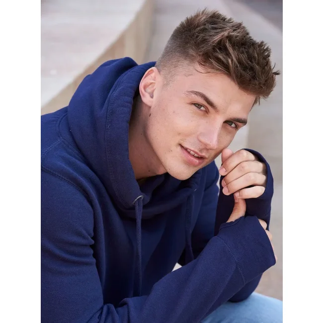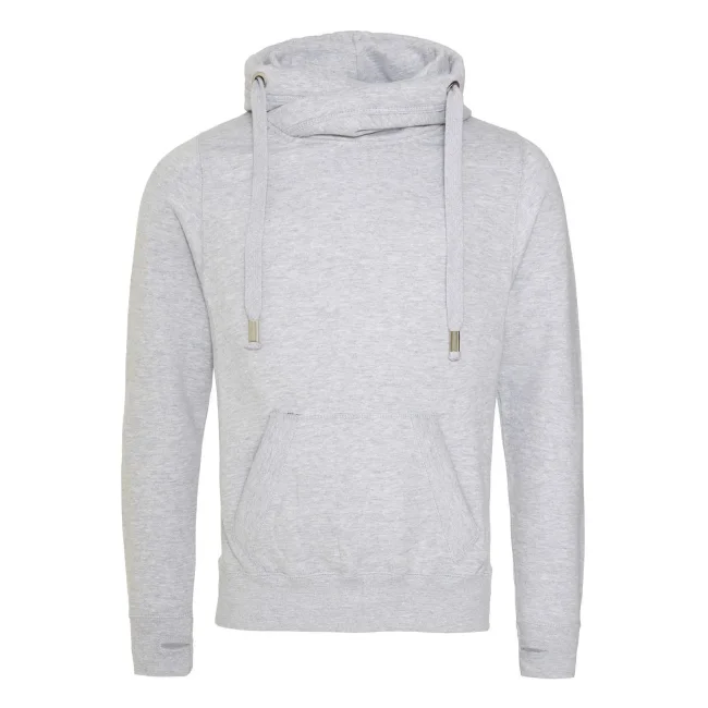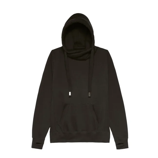 70% cotone 30% poliestere. Felpa pesante, con cappuccio incrociato sul davanti, cuciture doppie. Cappuccio a doppio strato con cordino piatto, polsini con fori per i pollici, orlo e polsini in costina, tasca a marsupio. Felpata internamente. Morbido cotone per una superficie di stampa ideale. Etichetta removibile. 52% cotone 48% poliestere (Charcoal). 65% cotone 35% poliestere (Heather Grey-Black Smoke).
