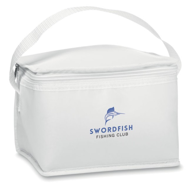 Borsa frigo per 6 lattine. Interno in alluminio ed esterno in TNT. 80 gr/m². Materiale isolante: Schiuma laminata con foglio di alluminio. Capacità 3L.