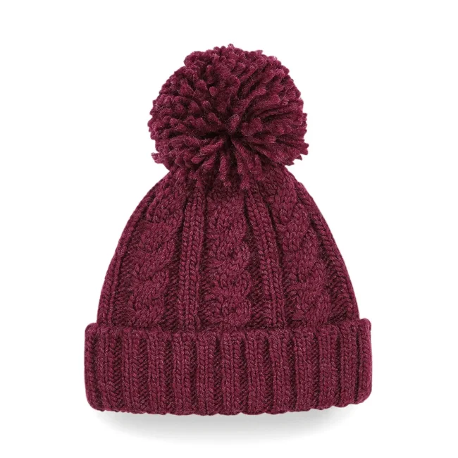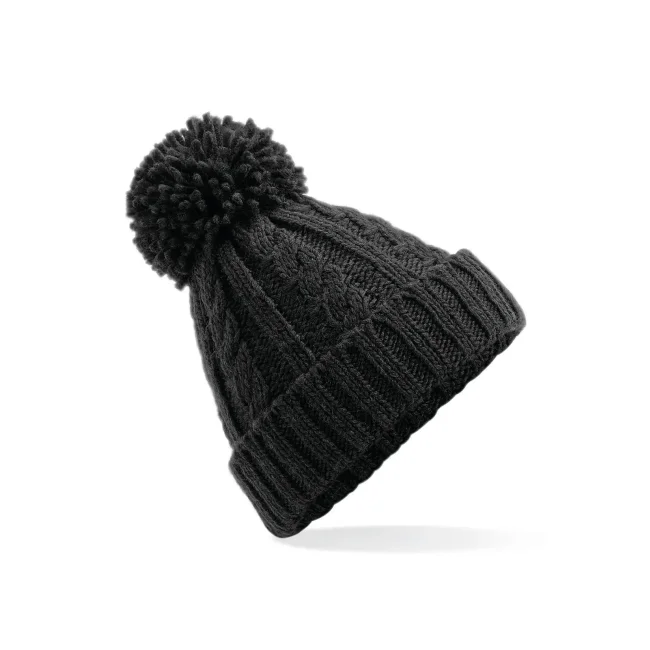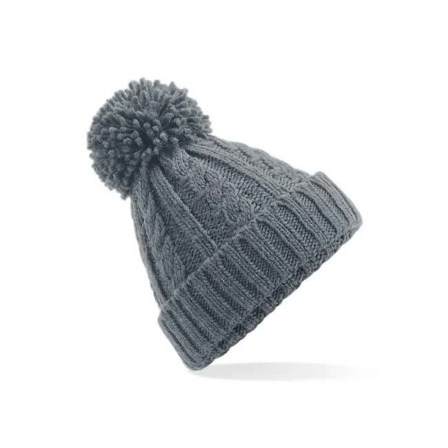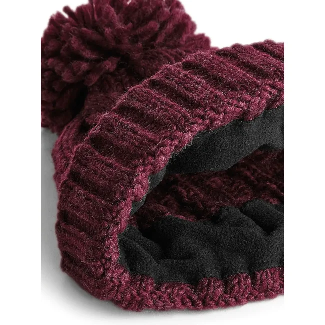 Cuffia Cable Knit Melange realizzata in 100% acrilico Soft-Touch, con un design a trecce in filato pesante e pom-pom abbinato. La fascia termica in tessuto Suprafleece garantisce calore e comfort, mentre il modello con risvolto offre un tocco di stile.