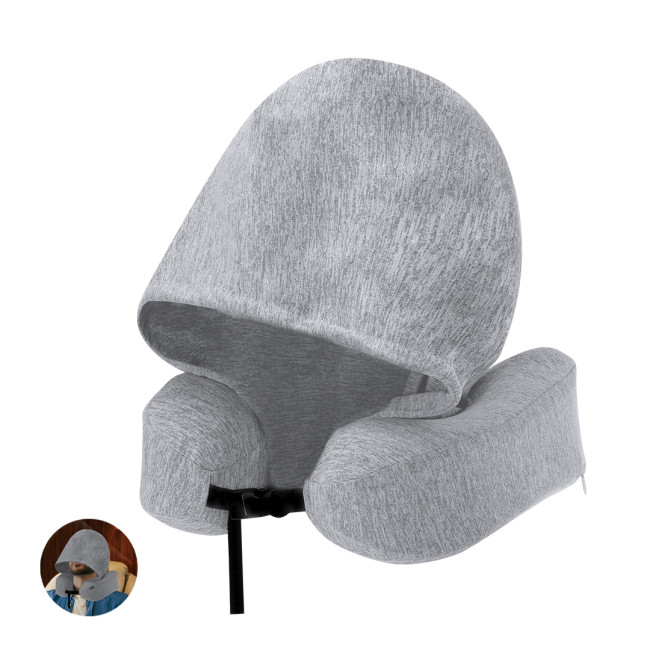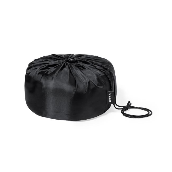 Cuscinetto realizzato in morbido tessuto di RPET, dotato di soffice riempimento adattabile. Include un cappuccio per maggiore calore e un accessorio di regolazione personalizzato, oltre a una maniglia di trasporto e custodia di stoccaggio.