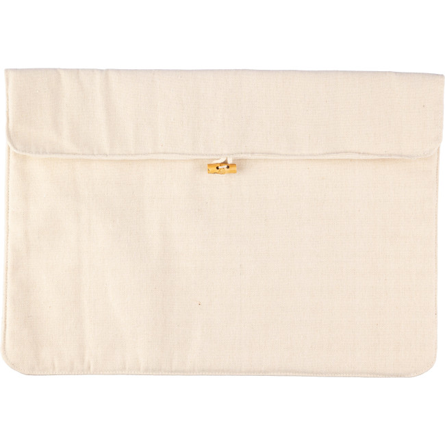 Custodia per laptop da 15 pollici in cotone da 220 g/m², fodera interna 120 g/m², chiusura con cordino e bottone in bambù