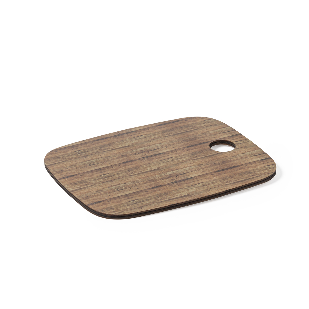 Tagliere in legno naturale, con foro per appenderlo. Ampia area appositamente pensata per la stampa e logo Made In Europe.