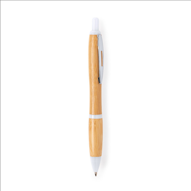 Penna a sfera con meccanismo a pulsante linea naturale, con corpo in bambù e dettagli in una vasta gamma di colori. Con originale clip in metallo fustellato e comoda impugnatura in bambù. Inchiostro blu.