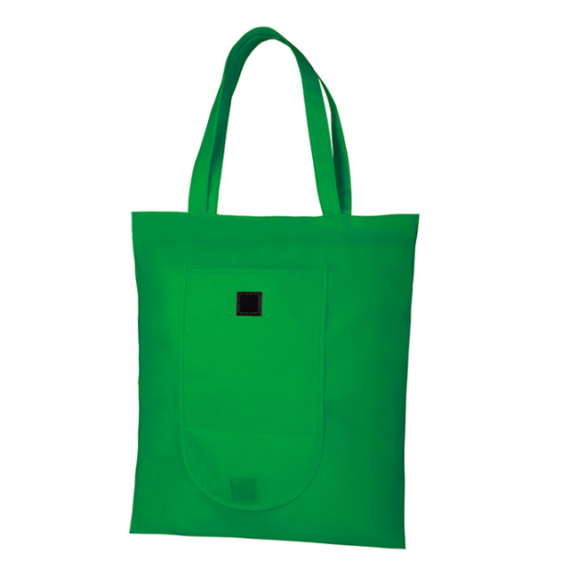 borsa shopping richiudibile chiusura con velcro manici lunghi rifiniture cucite tecnica di stampa consigliata: serigrafica