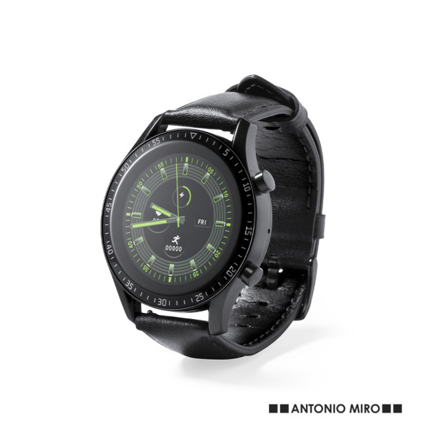 Orologio intelligente multifunzione di Antonio Miro, dal design elegante e moderno in qualità premium e stile senza tempo. Cinturino in pelle e display TFT da 1,32 pollici, con connessione Bluetooth e molteplici funzioni integrate, che lo rendono un gadget perfetto per luso quotidianoResistente agli spruzzi dacqua, con APP disponibile per iOS e Android. Include un manuale di istruzioni in inglese e spagnolo.Presentato in unattraente scatola dal design premium di colore nero con logo del marchio.