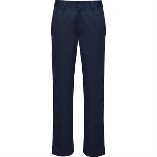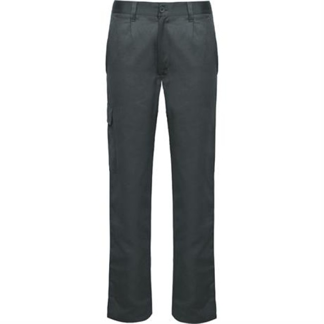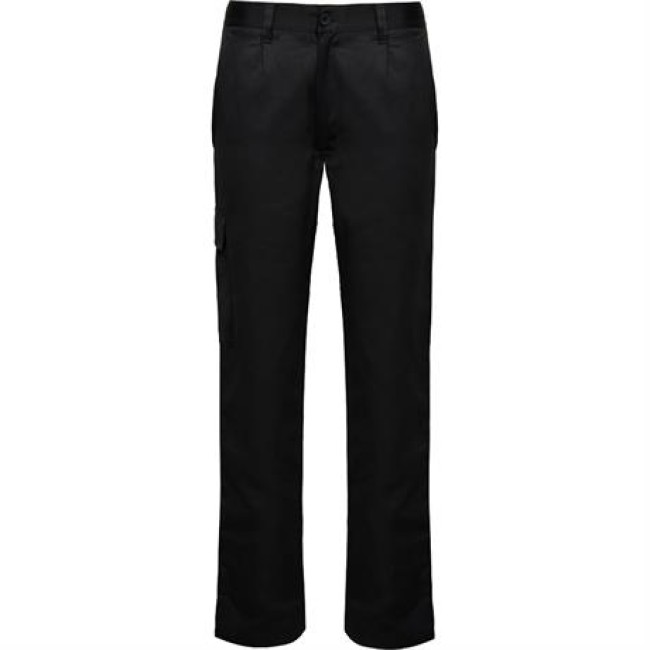 Pantaloni da lavoro lunghi con taglio dritto e tessuto resistente.· Girovita elastico regolabile nella parte posteriore.· Due tasche frontali.· Una tasca posteriore con pattina e chiusura a velcro.· Una stretta tasca laterale sinistra senza pattina.· Una tasca laterale destra con pattina.