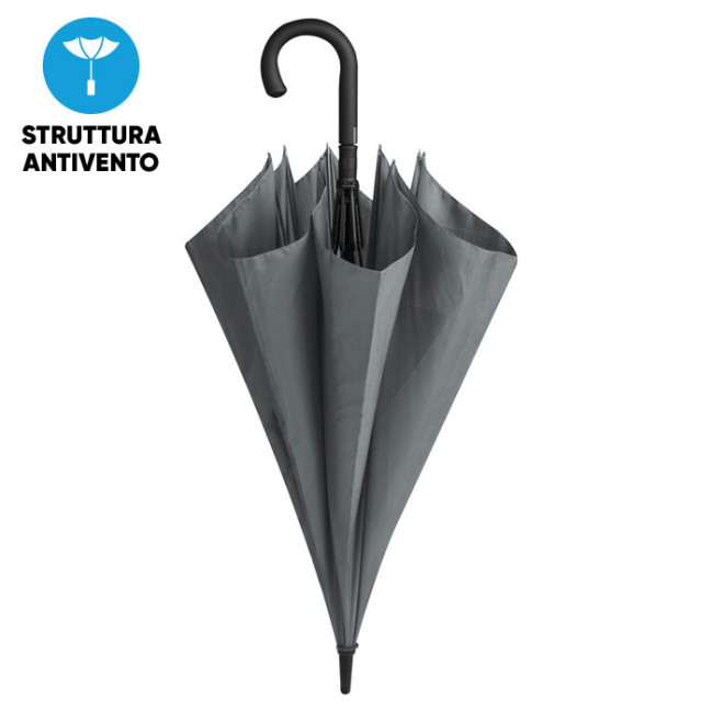 ombrello automatico poliestere pongee struttura in fibra di vetro antivento chiusura in velcro fusto in metallo
