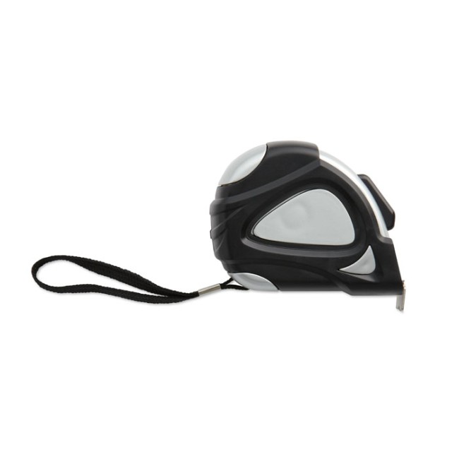 Metro in ABS in colore nero e silver. Laccetto incluso, clip in metallo. Lunghezza 3mt.