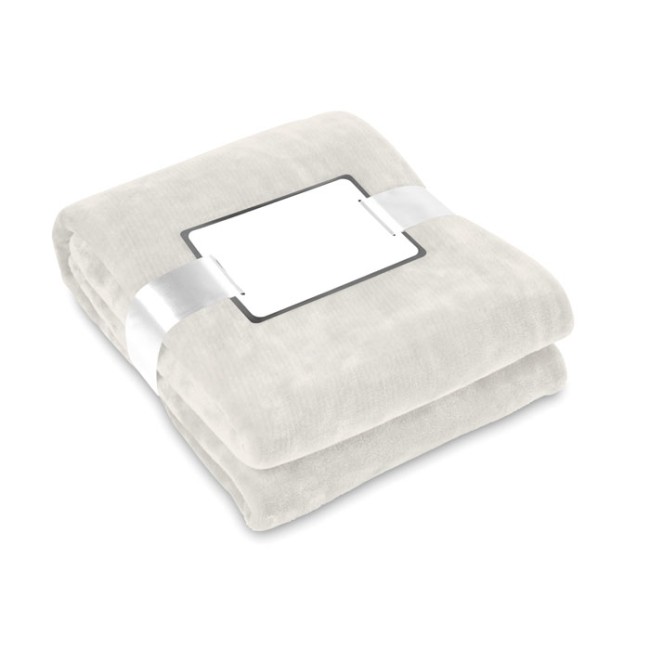 Coperta in flanella 280gr confezionata con nastro e cartoncino stampabile.