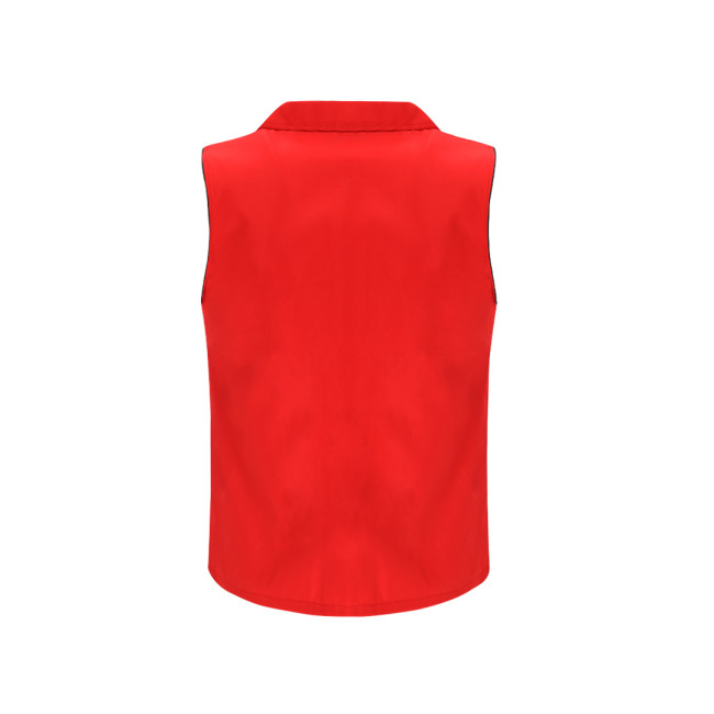 Gilet unisex in tessuto leggero e traspirante con fodera in rete bianca. Zip frontale nero e tirazip argentato. Comprende una tasca esterna sul petto destro e due tasche laterali con zip nere e tirazip. Presenta un mezzaluna all'interno del collo.