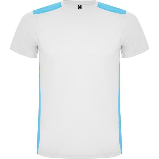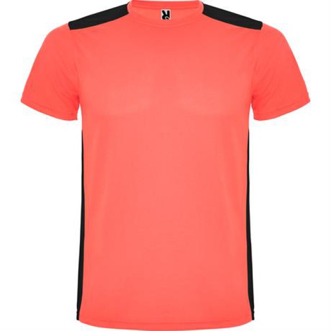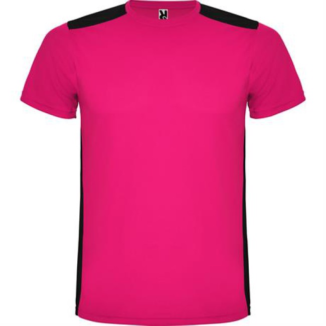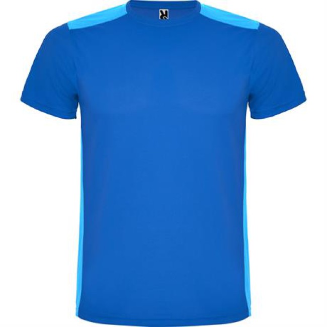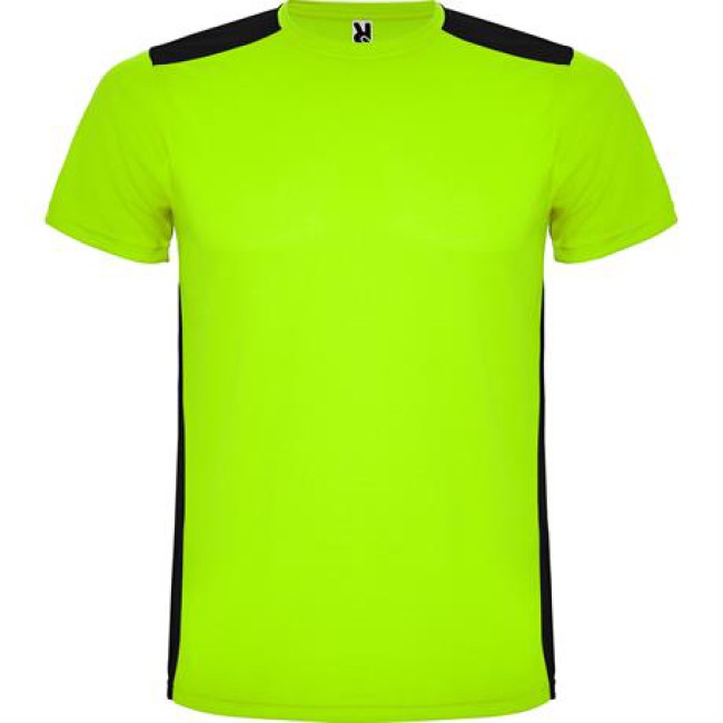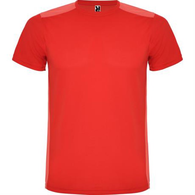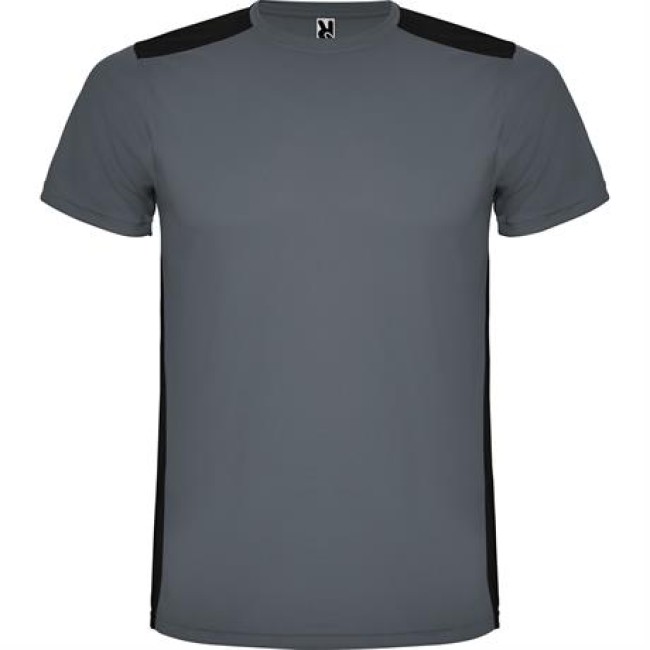 T-shirt tecnica maniche corte.1.- Girocollo.2.- Realizzata con due tessuti di poliestere.3.- Tessuto principale frontale occhio di pernice e tessuto reticolare 3D traspirante sulla schiena.4.- Tessuto trattato per l'assorbimento dell'umidità.5.- Cuciture decorative ZigZag sulle spalle e sui laterali.6.- Parte posteriore leggermente più lunga.