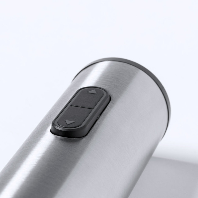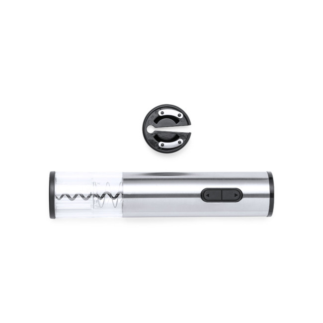 Cavatappi elettrico in acciaio inossidabile e ABS resistente, con tagliacapsule incluso. Confezionato singolarmente in una scatola di design, con manuale di istruzioni in inglese e spagnolo. Alimentazione a batteria (4xAA non incluse).