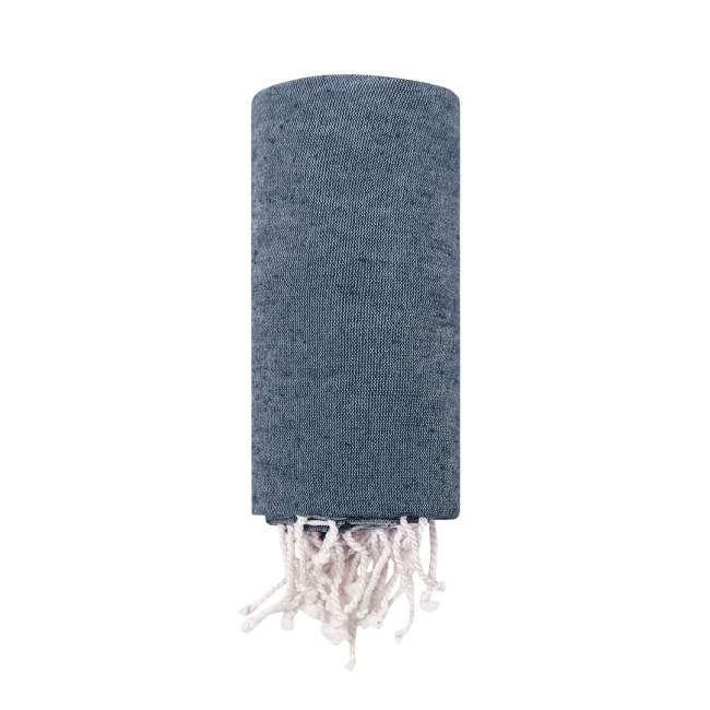 Pareo asciugamano di 180g/m2 in combinazione di cotone riciclato e RPET.Il materiale RPET è realizzato con plastica riciclata, per promuovere il riutilizzo dei rifiuti plastici e contribuire alla sostenibilità del pianeta.