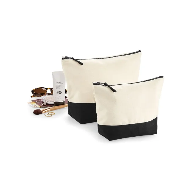 100% Cotone Canvas pettinato. Astuccio multiuso, chiusura con zip, Etichetta removibile. Dimensioni: M: 19x18x9cm, cap. 3lt. - L: 23x23x11cm, cap. 5lt.