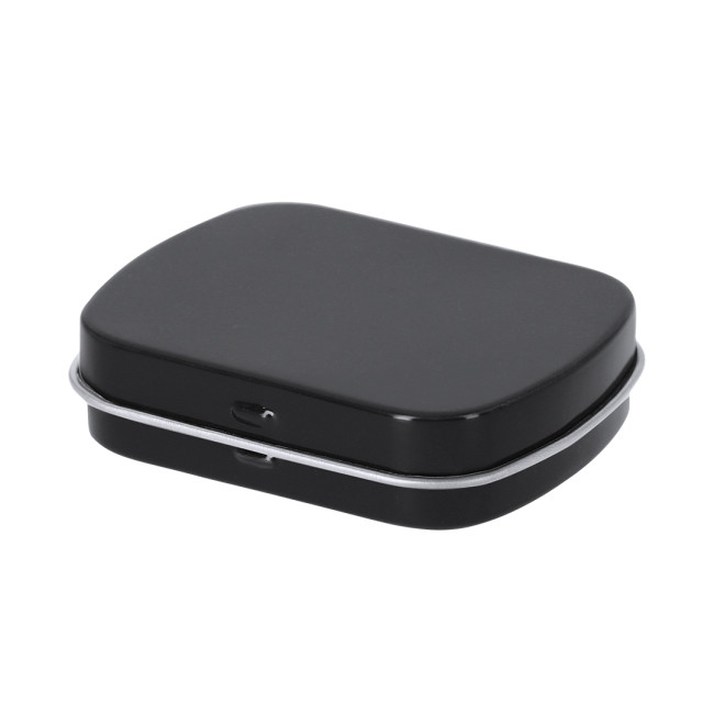 Distributore di mentine senza zucchero, con una capacità di 23 g. Presentato in una scatola metallica con coperchio a cerniera, è un accessorio pratico e funzionale, perfetto per ogni occasione.