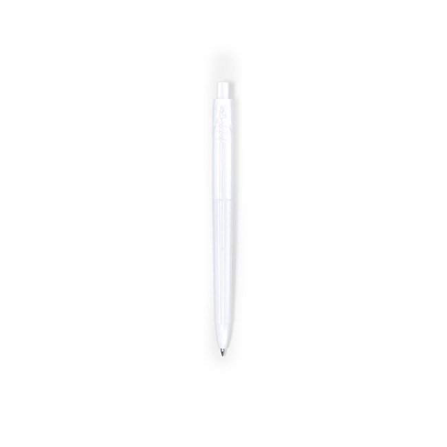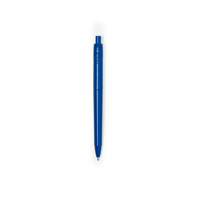 Penna in RPET. Clip con ampia area di stampa, meccanismo a pulsante e inchiostro blu. Logo RPET sulla parte superiore della penna.Realizzata in plastica riciclata, per promuovere il riutilizzo dei rifiuti plastici e contribuire alla sostenibilità del pianeta".