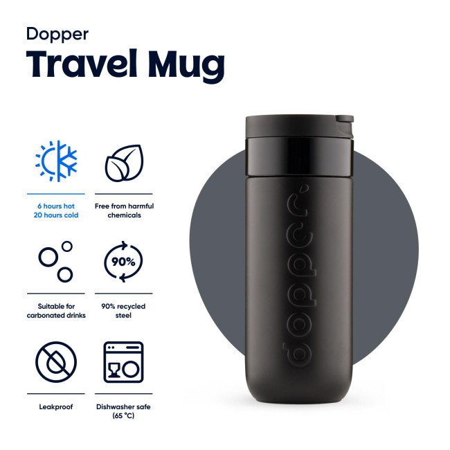 Dopper, la tazza da viaggio pronta a tutto e ad andare ovunque: caffeina al mattino, idratazione a mezzogiorno o una sensazione frizzante la sera. Mantiene calde le bevande calde, fresche quelle fredde e frizzanti quelle gassate. Nessuna perdita. Nessuna seccatura. Nessun peso aggiuntivo. E sicuramente nessun rifiuto monouso. Dotato di un tappo flip facile da aprire, mantiene le bevande calde fino a 6 ore e fredde fino a 20 ore. Realizzato in acciaio inossidabile a doppia parete con il 90% di contenuto riciclato, rifinito con un resistente rivestimento in polvere. Lavabile in lavastoviglie (senza stampa) fino a 65 °C. Il tè o il caffè potrebbero causare macchie o odori. Prestare attenzione con i liquidi caldi.