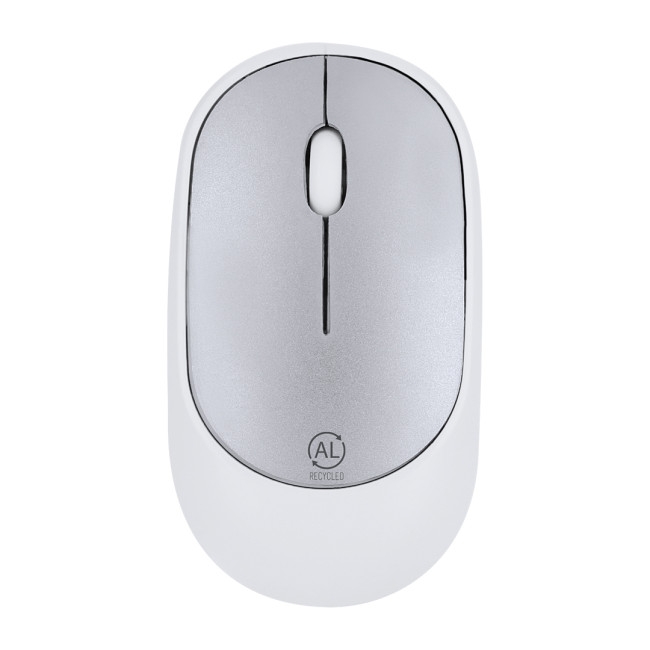 Mouse ottico wireless realizzato in RABS resistente (ABS riciclato), con piastra superiore in alluminio riciclato. Design ergonomico e connessione wireless (incluso connettore USB). Con logo in alluminio riciclato. Alimentazione a batteria (1xAA non inclusa).Il RABS è una plastica altamente riciclabile e resistente con molteplici applicazioni che lo rendono una soluzione ecologica. Certificazione RCS che garantisce la sua origine riciclata.L'alluminio riciclato è un materiale con possibilità di riciclo praticamente infinite, senza perdere le sue proprietà originali e consumando meno energia nel processo.Certificazione GRS (Global Recycled Standard) che garantisce l'origine riciclata del materiale utilizzato per la produzione del prodotto.
