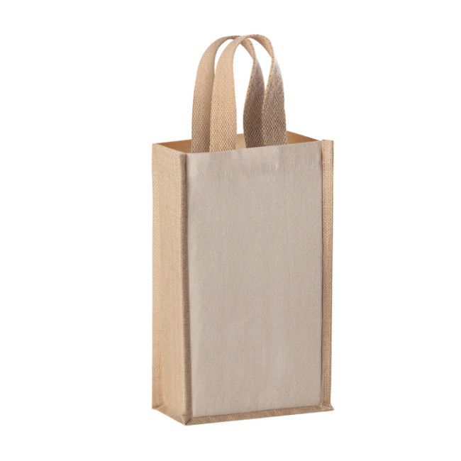 borsa porta bottiglia in cotone e juta laminata manici corti soffietto 220 g/m2
