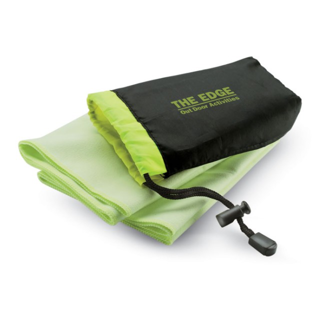Asciugamano in custodia di nylon. 70% poliestere e 30% poliammide.