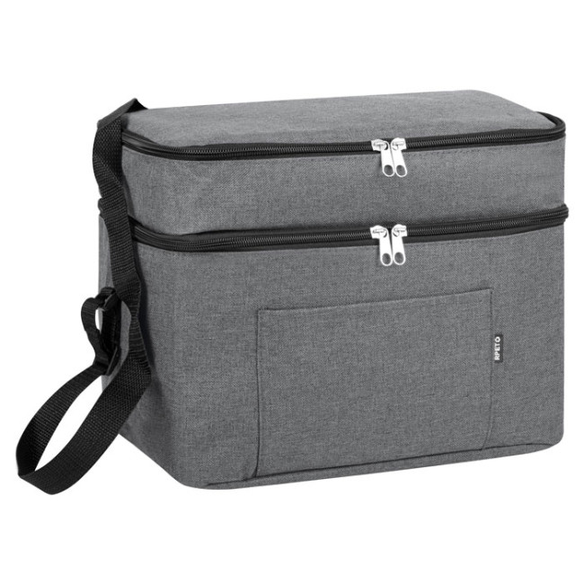 borsa frigo con doppio compartimenti capienza 15L realizzata in RPET 600D melange chiusura zip tracolla regolabile