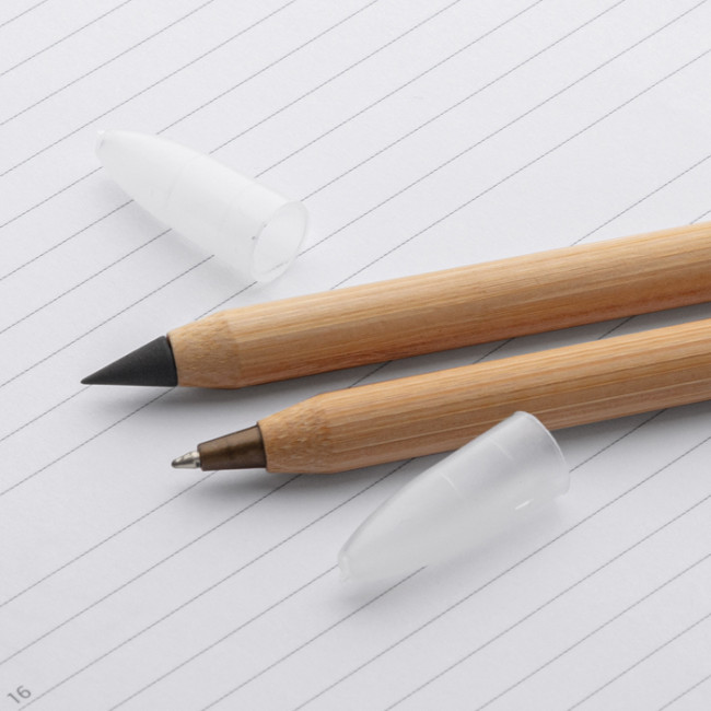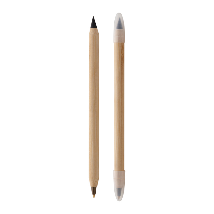 matita inesauribile e sfera fusto in bamboo cappuccio trasparente refill nero